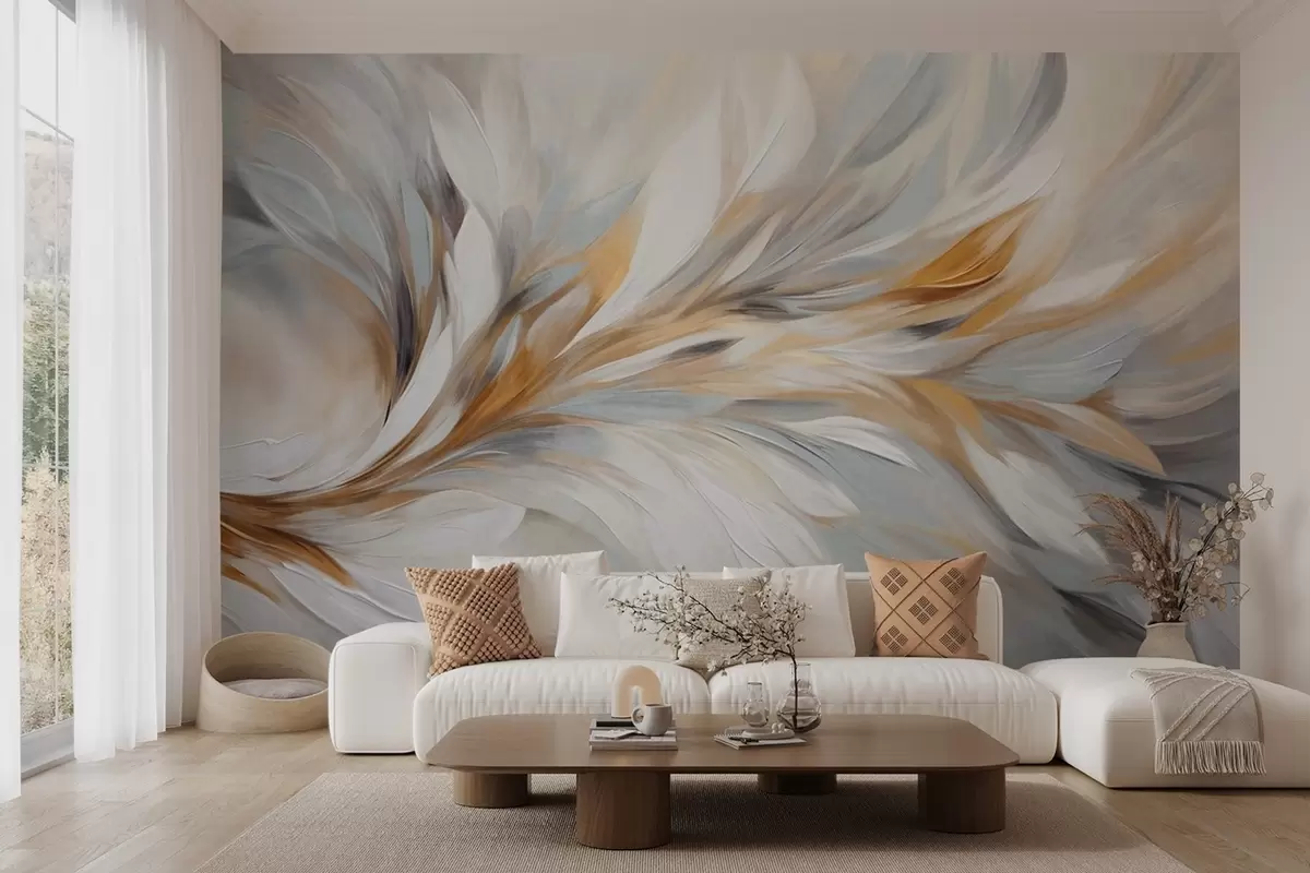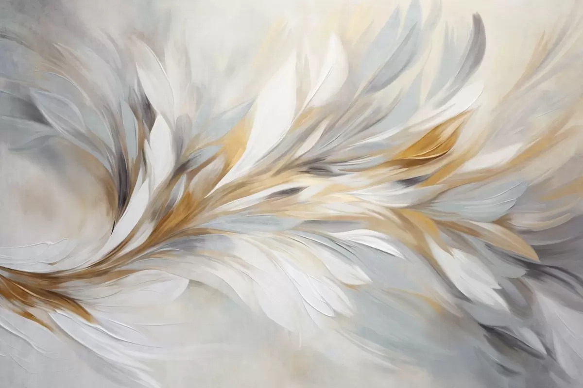 Papier peint Style de peinture abstraite avec des coups de pinceau texturés blancs, jaunes et gris sur un fond doux et clair. N° w09552