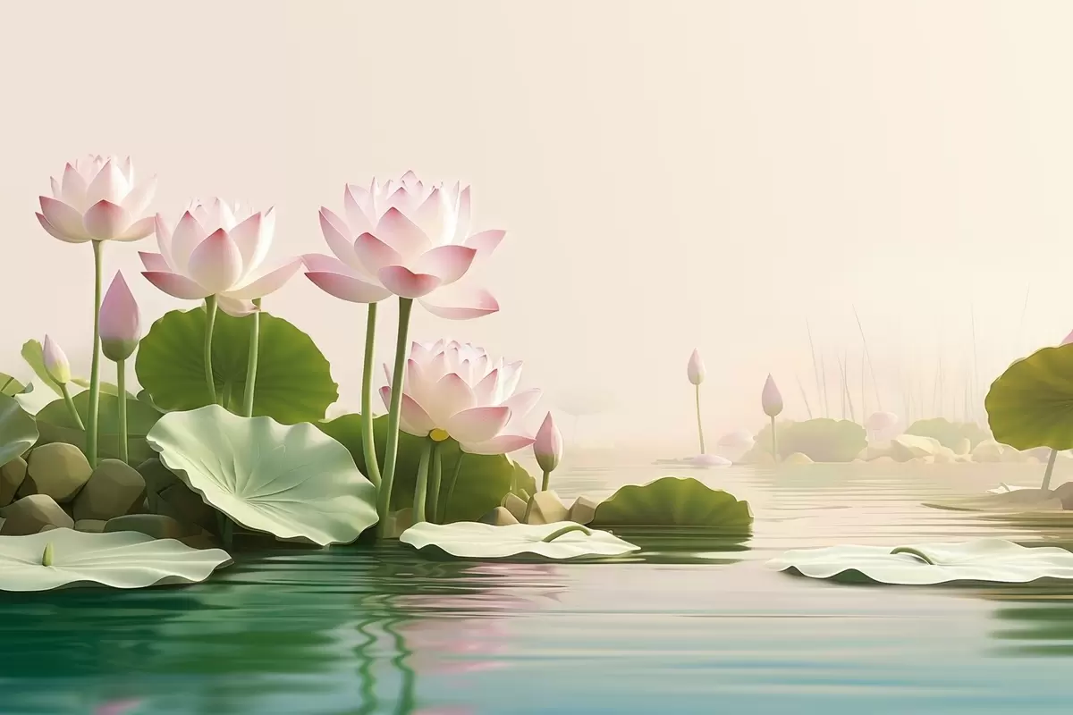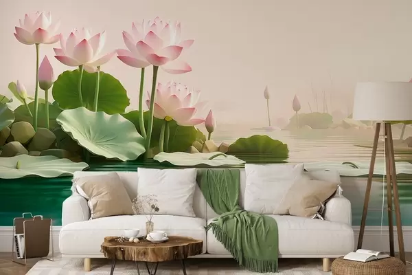 Papier peint Fleurs de lotus roses sur l'eau, un paysage tropical paisible N° w09561