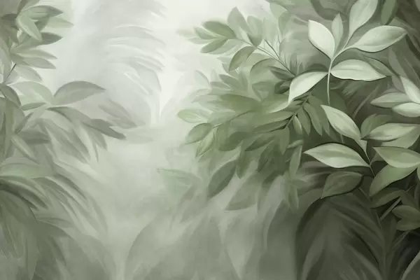 Papier peint Feuilles brunes et beiges avec un feuillage doux et flou, dans un style pictural avec des coups de pinceau visibles. N° w09584