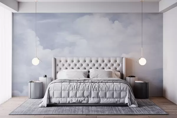 Papier peint Ciel pastel texturé rempli de nuages blancs, à l'esthétique douce et minimaliste N° w09589