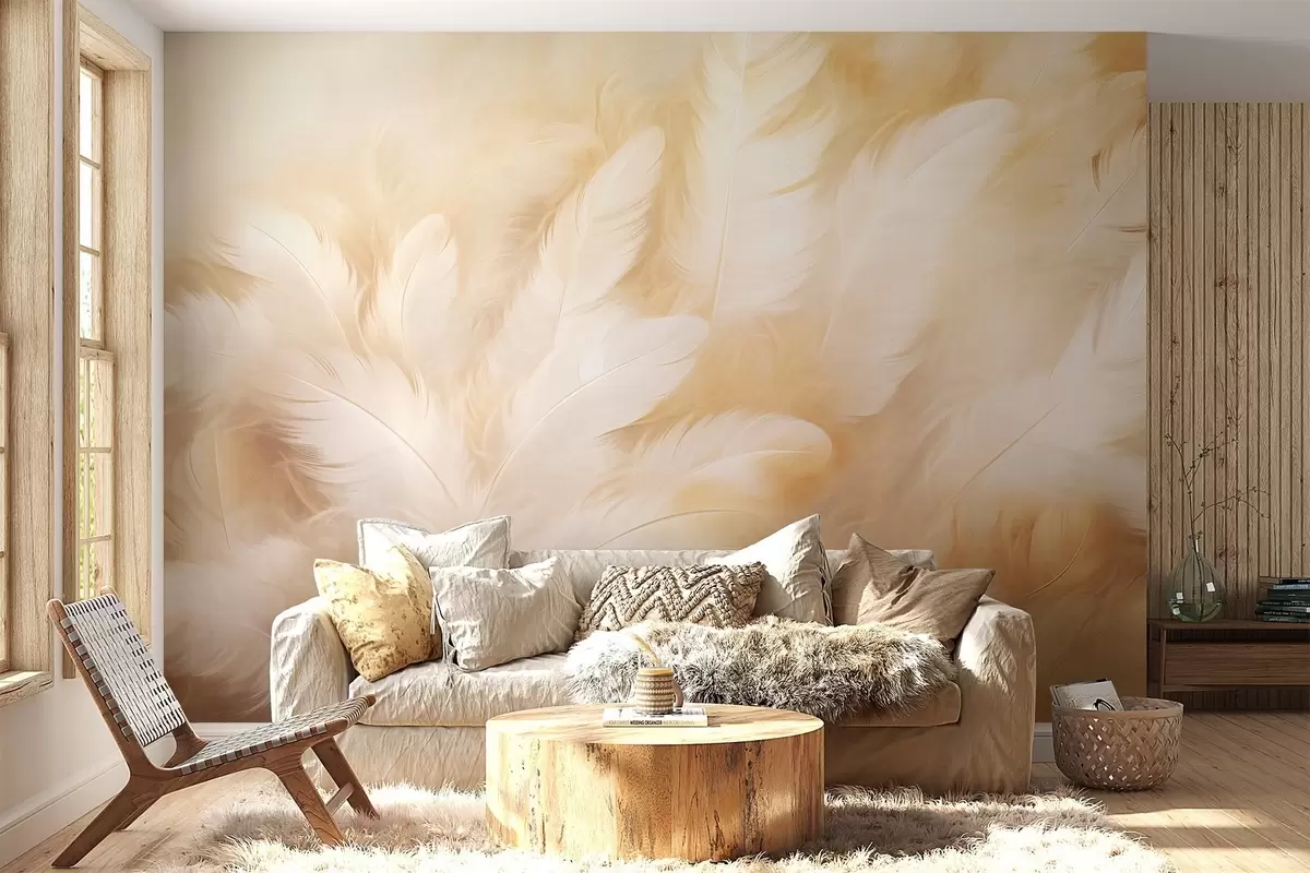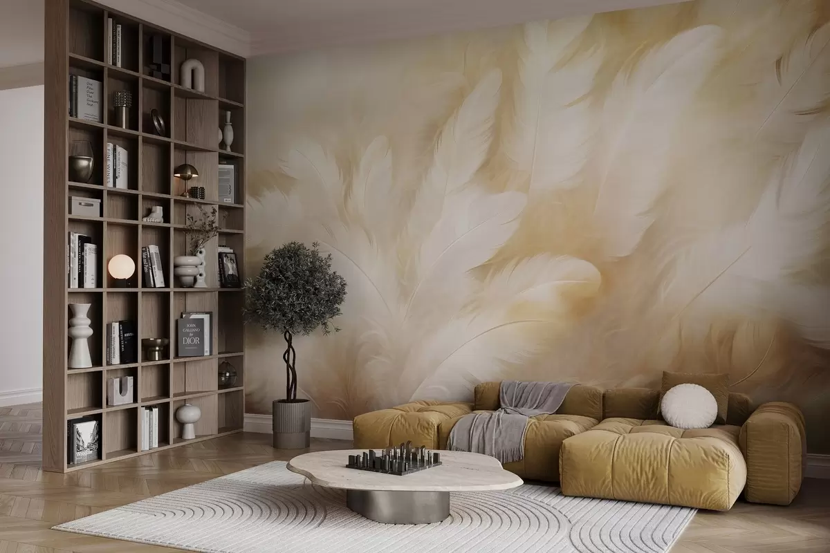 Papier peint Plumes blanches et jaunes à la texture douce N° w09606
