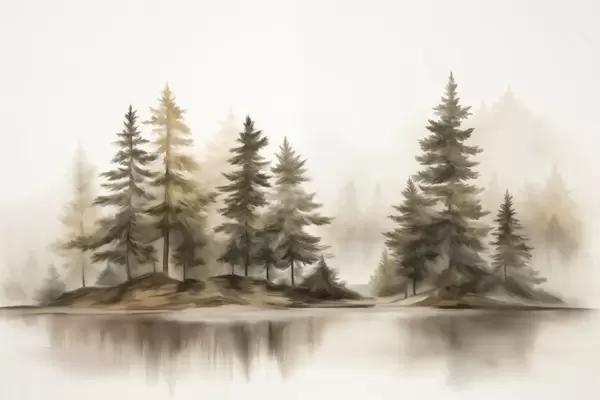 Papier peint Une forêt brumeuse texturée avec de grands pins peints en imitation N° w09610