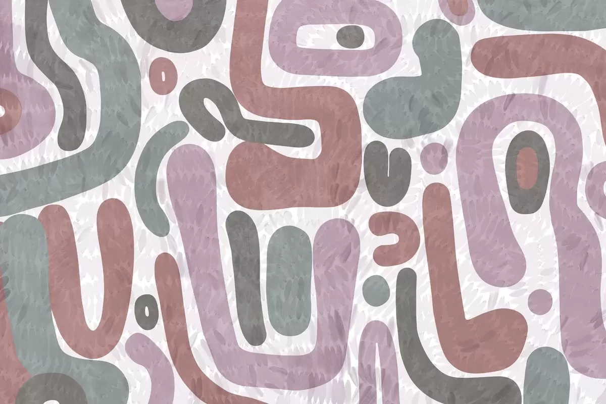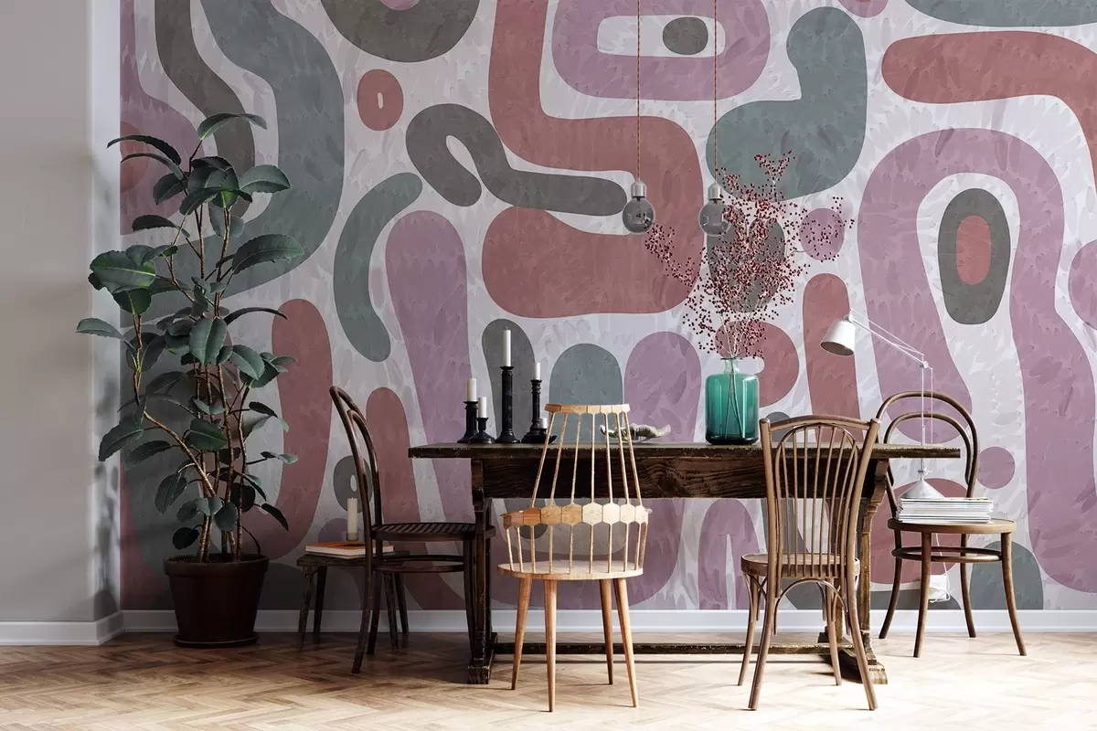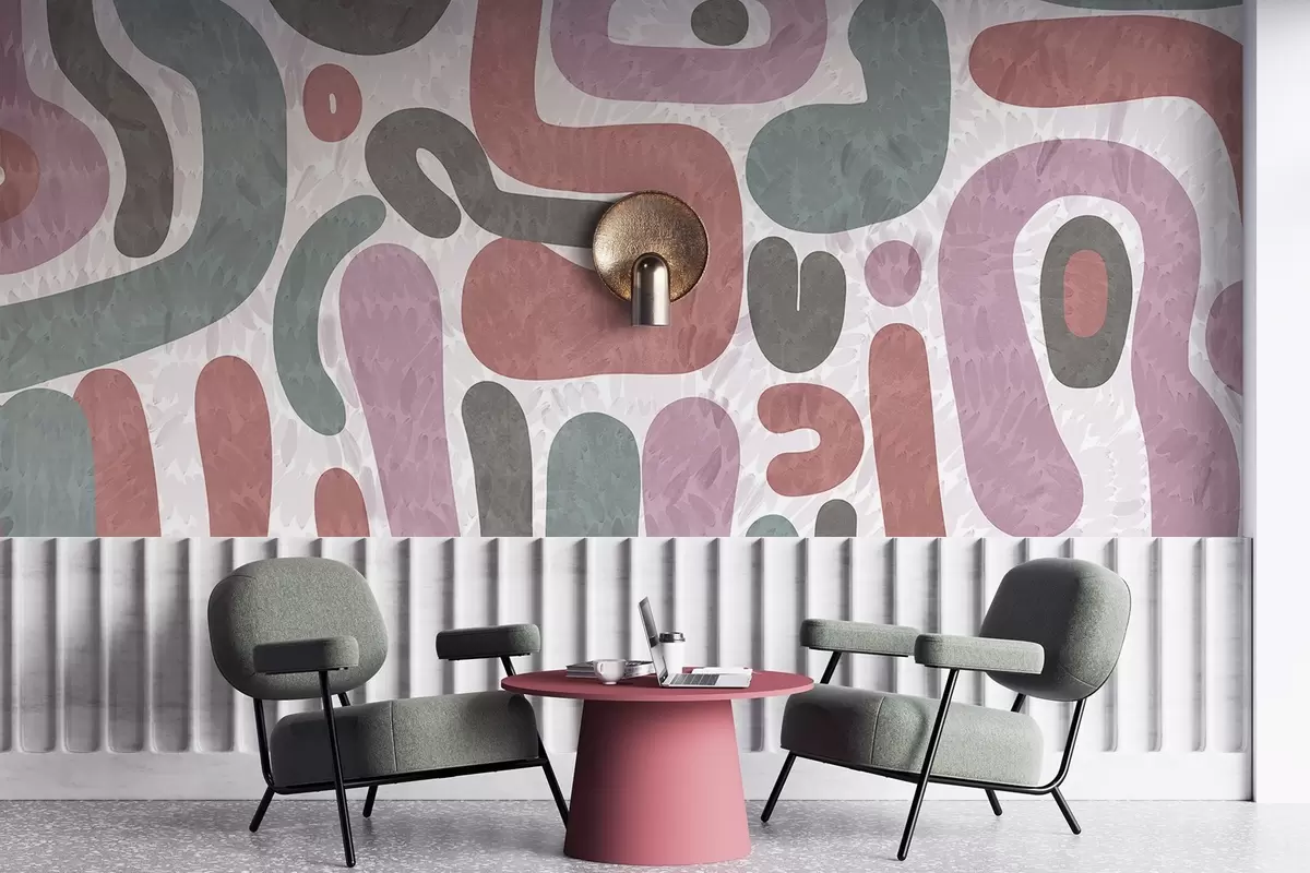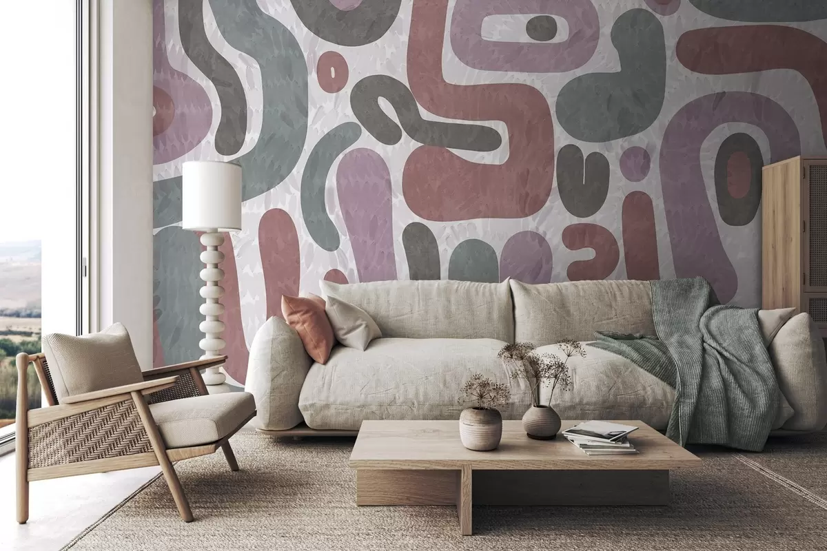 Papier peint Formes abstraites texturées dans des tons roses, verts et gris discrets, sur un fond texturé d'art moderne N° w09622