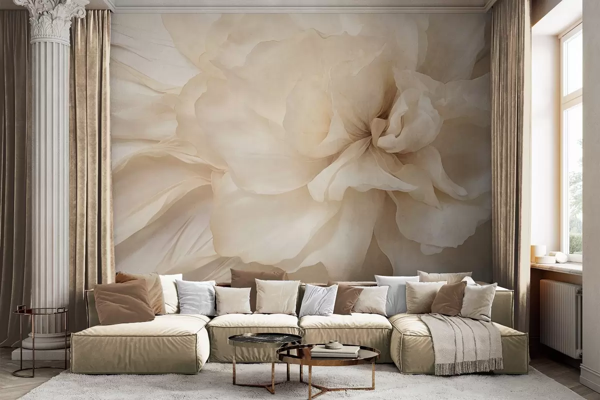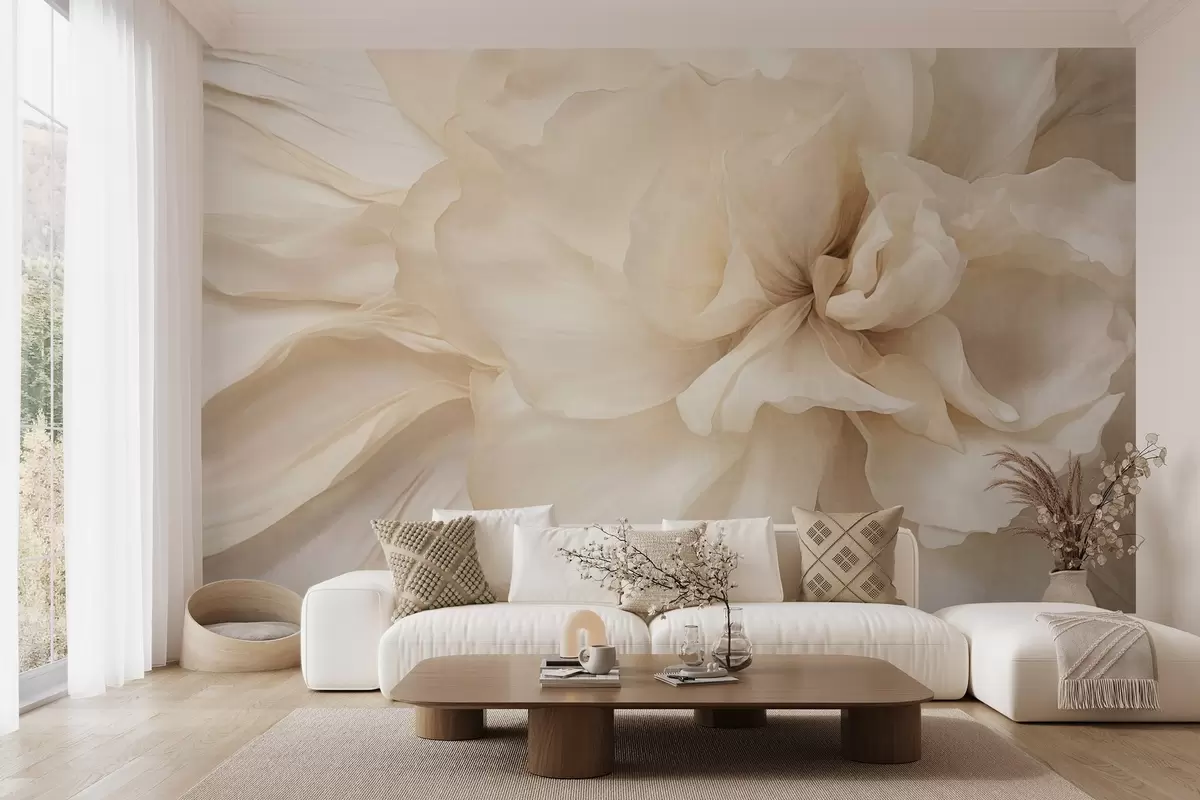 Papier peint Fleur délicate et texturée, de couleur claire, aux pétales translucides, sur fond abstrait doux. N° w09632