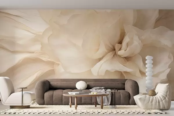 Papier peint Fleur délicate et texturée, de couleur claire, aux pétales translucides, sur fond abstrait doux. N° w09632
