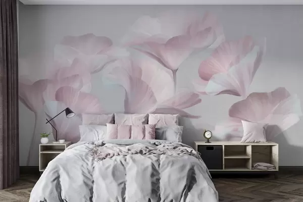 Papier peint Fleurs de lotus translucides texturées rose pâle aux pétales délicats sur fond gris discret N° w09640v1