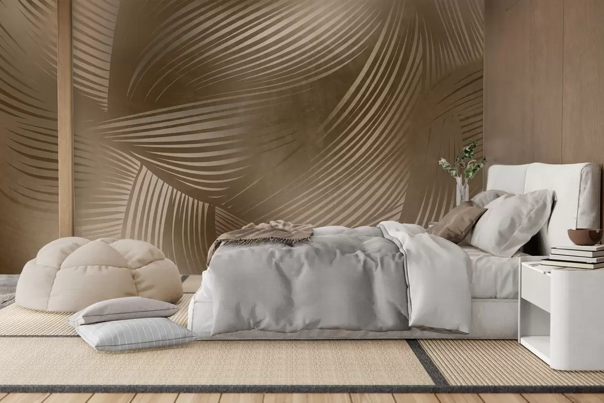 Papier peint Imprimé abstrait composé de lignes fluides et courbes dans des tons brun foncé, créant un effet texturé et moderne. N° w09646