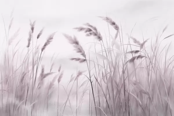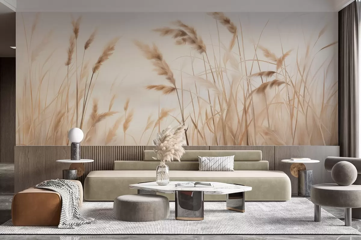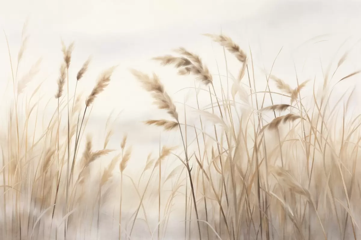 Papier peint Hautes herbes sèches et texturées avec des épis de blé dans le champ sur un fond doux et pâle N° w09648