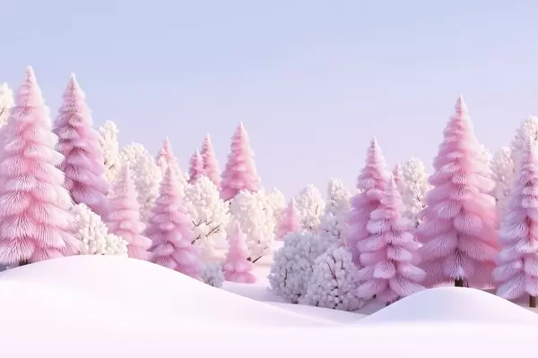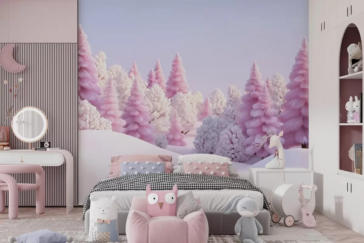 Papier peint Une forêt hivernale enneigée aux teintes roses N° w09654