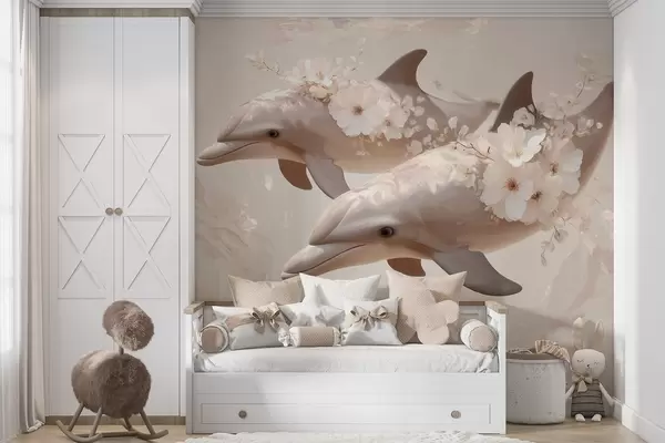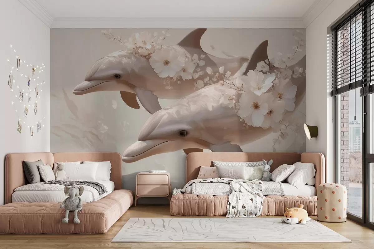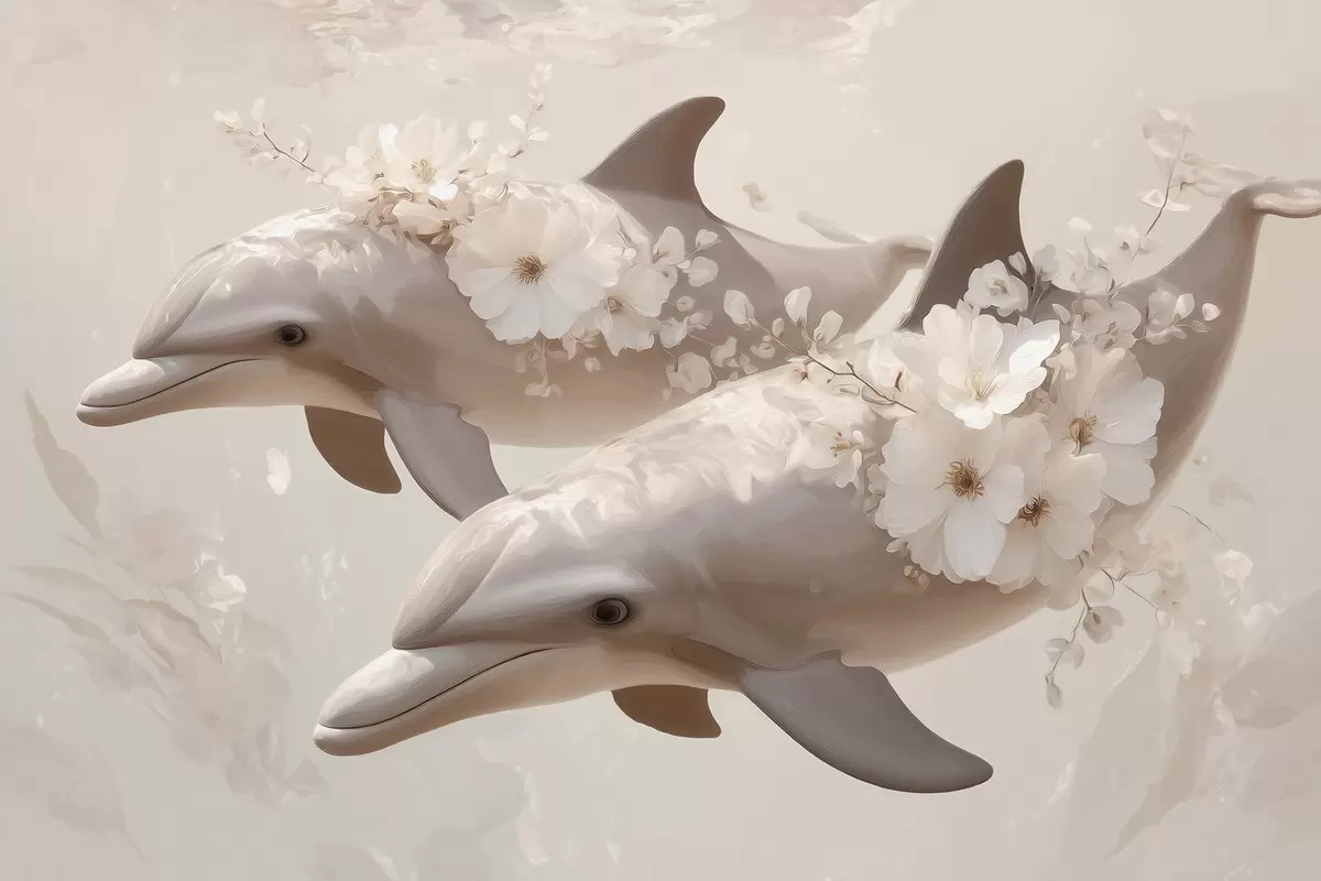 Papier peint Des dauphins dans un océan de fleurs délicates et de lumière douce N° w09666
