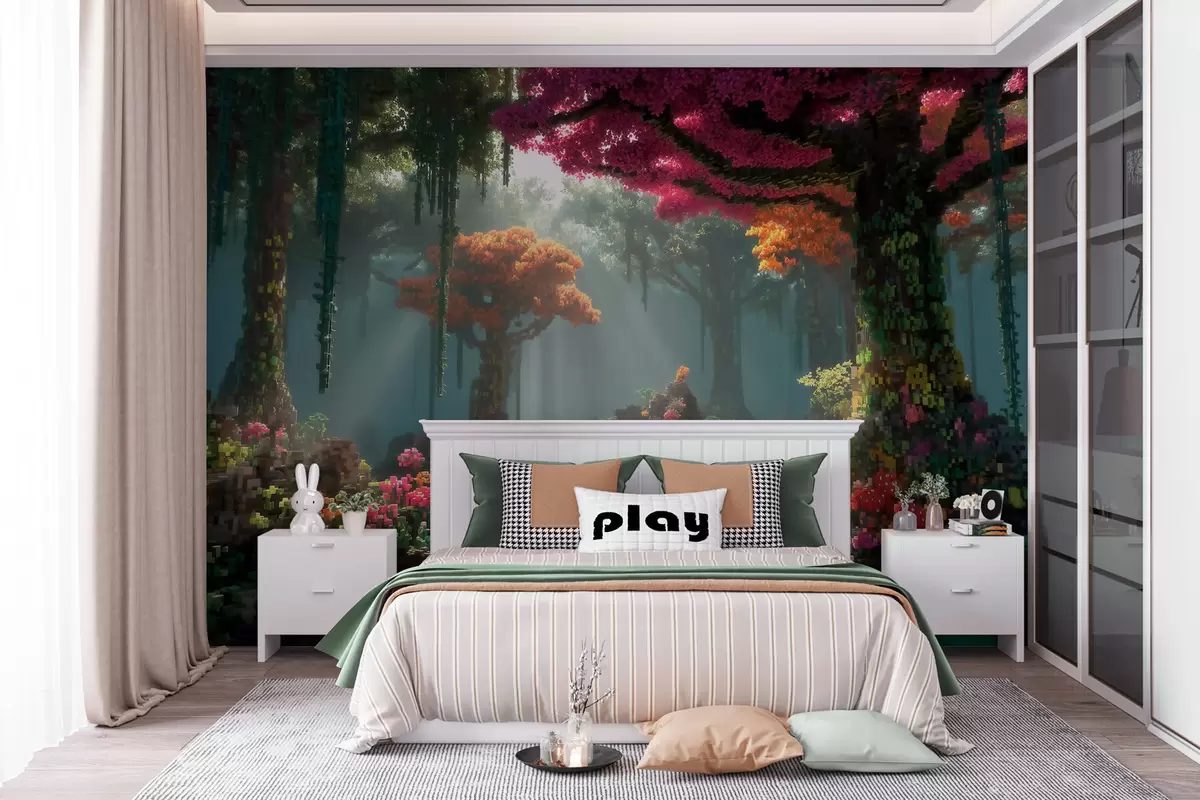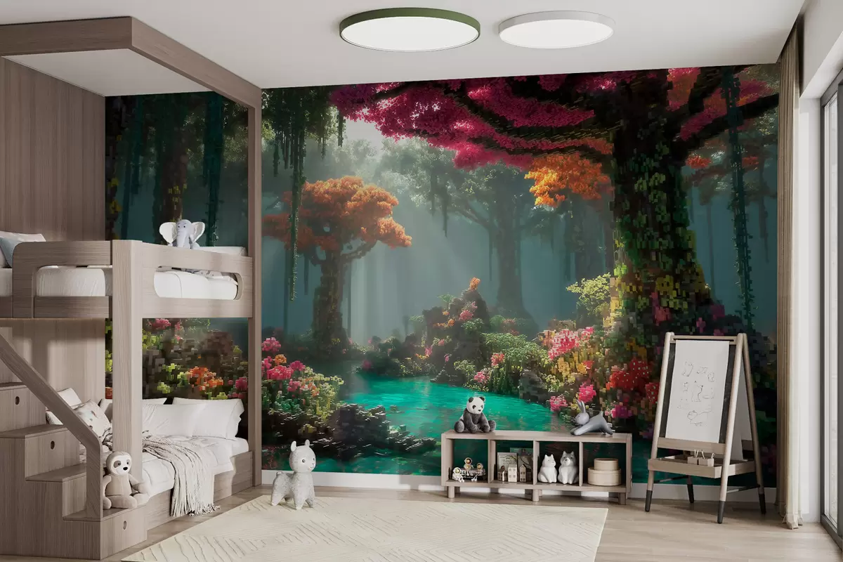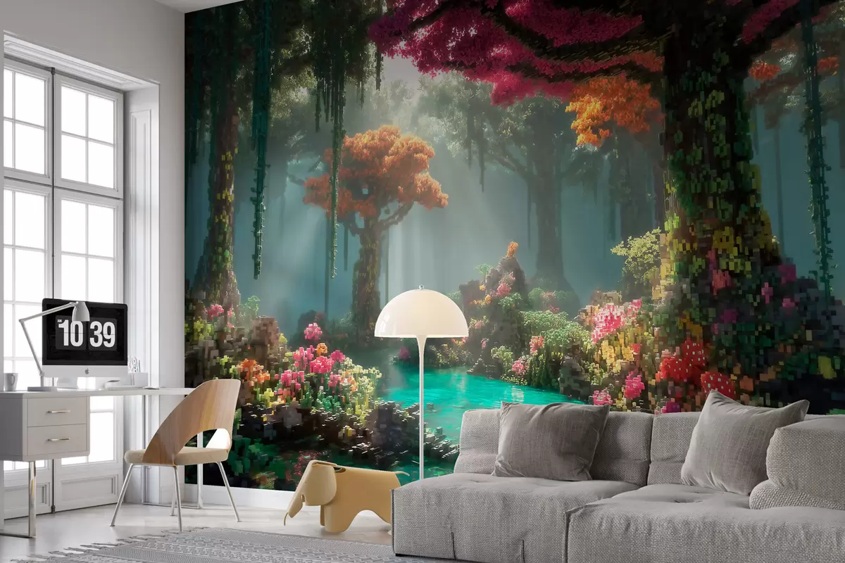 Papier peint Une clairière de la forêt enchantée en pixels inspirée des jeux vidéo N° w09683