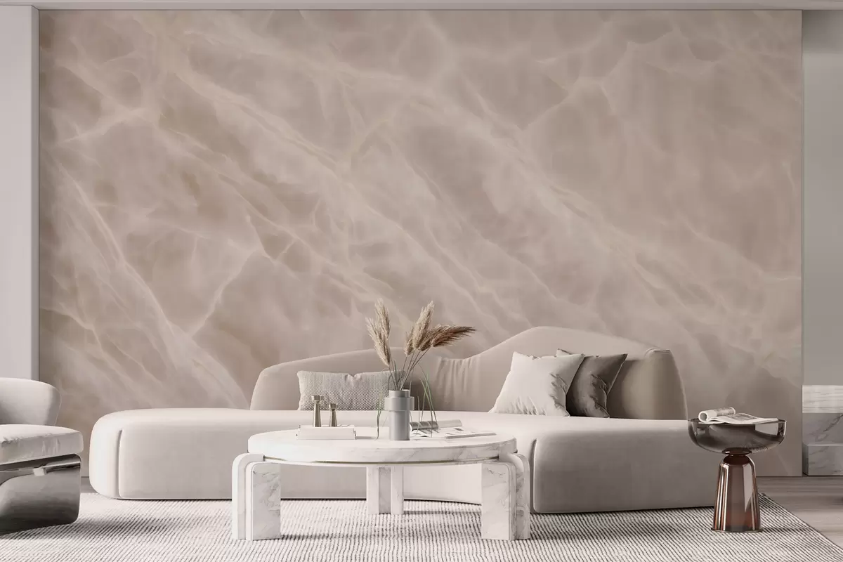 Papier peint Élégante œuvre d'art abstraite dans une palette beige avec une imitation marbre N° w09684