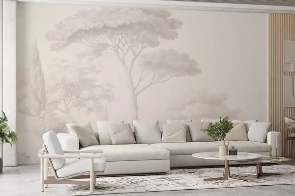 Papier peint Paysage forestier paisible dans une palette de couleurs beiges N° w09685
