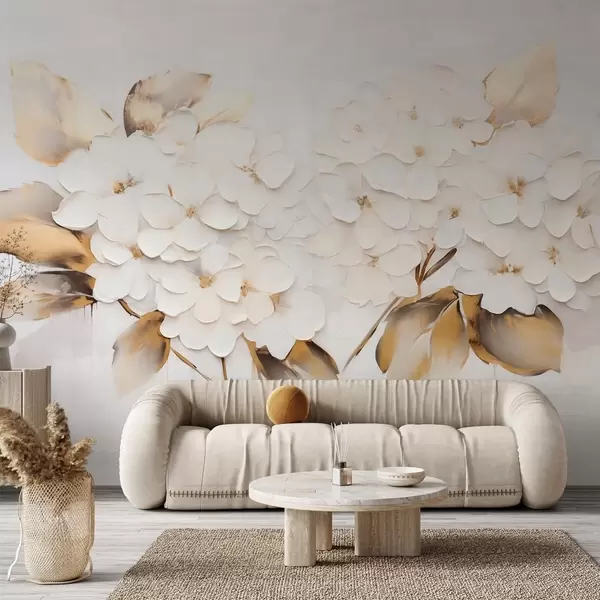 Papier peint Hortensias luxueux aux feuilles jaunes N° w09711