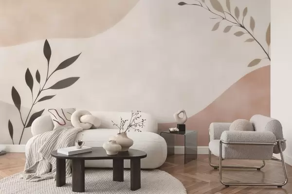 Papier peint Vagues abstraites beige-pêche avec des branches N° w09722