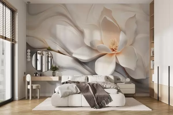Papier peint Magnolia blanc en trois dimensions avec imitation de texture marbrée en relief N° w09729