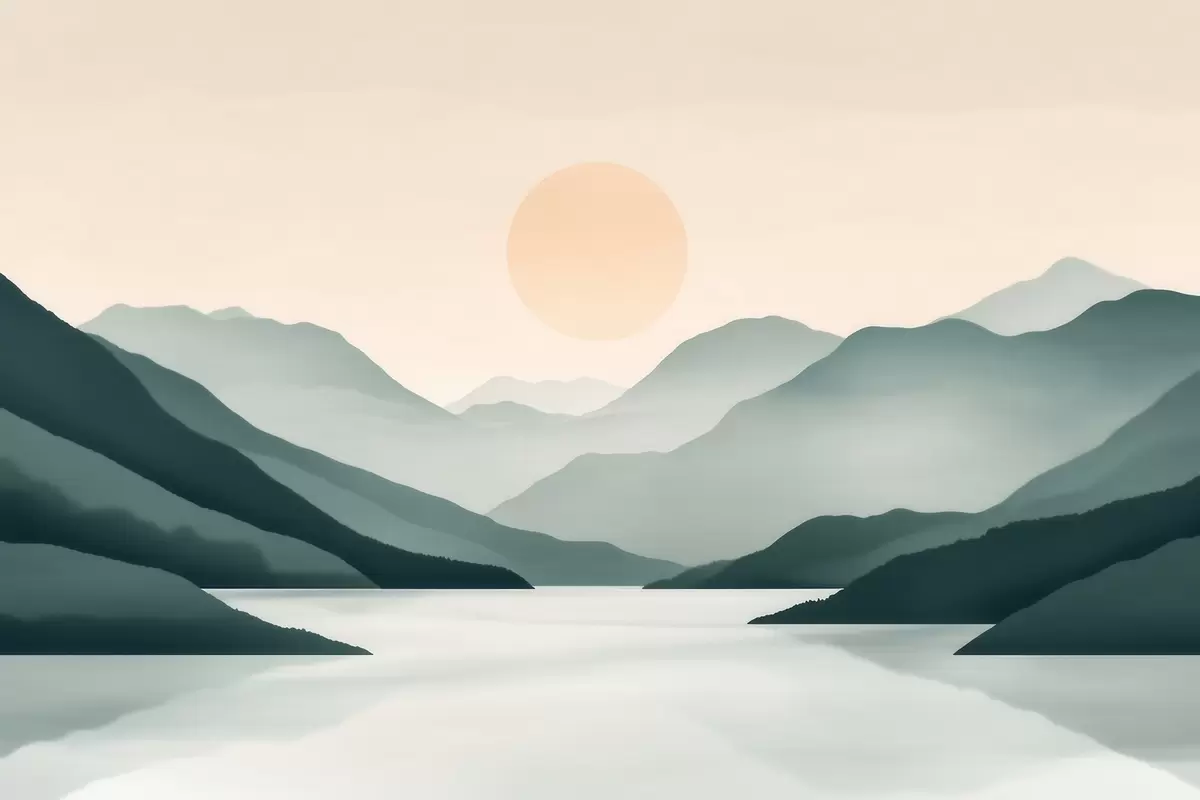 Papier peint Paysage montagneux paisible avec le soleil sur le lac N° w09735