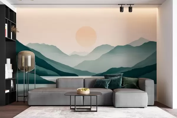 Papier peint Paysage montagneux paisible avec le soleil sur le lac N° w09735