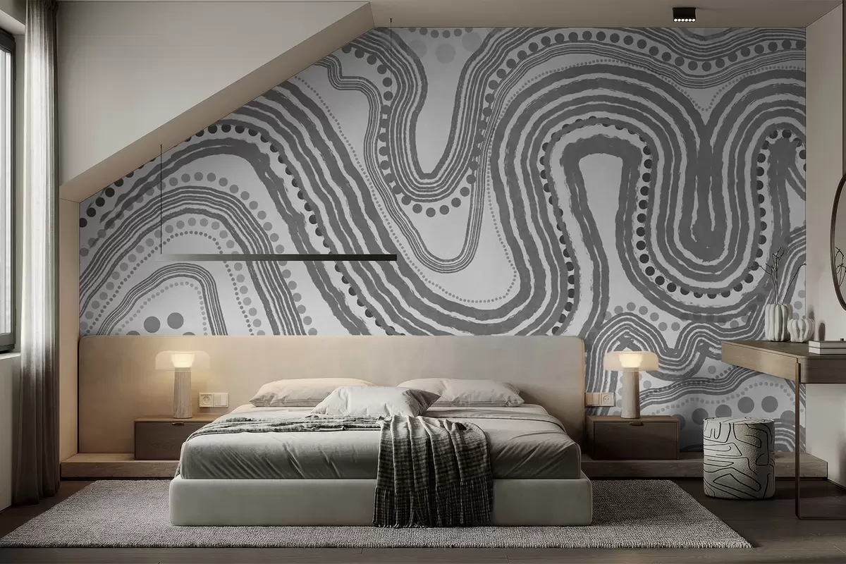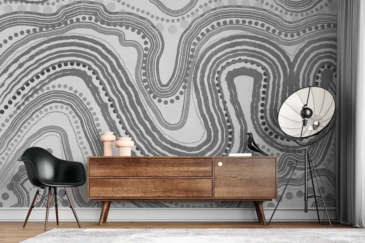 Papier peint Lignes ondulées et points abstraits gris foncé, art moderne texturé N° w09747v2