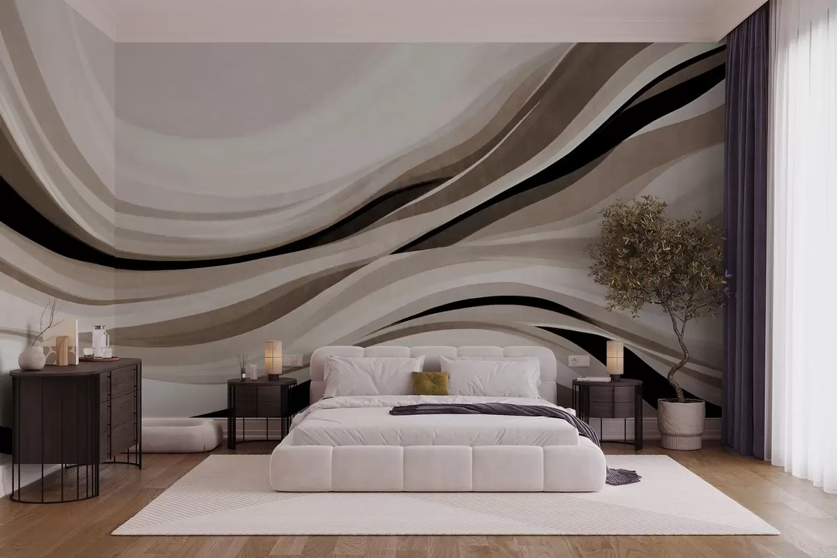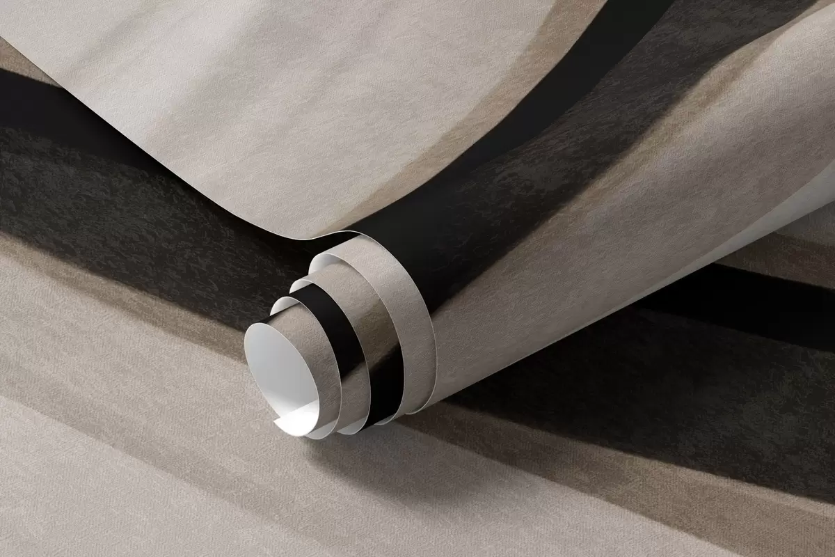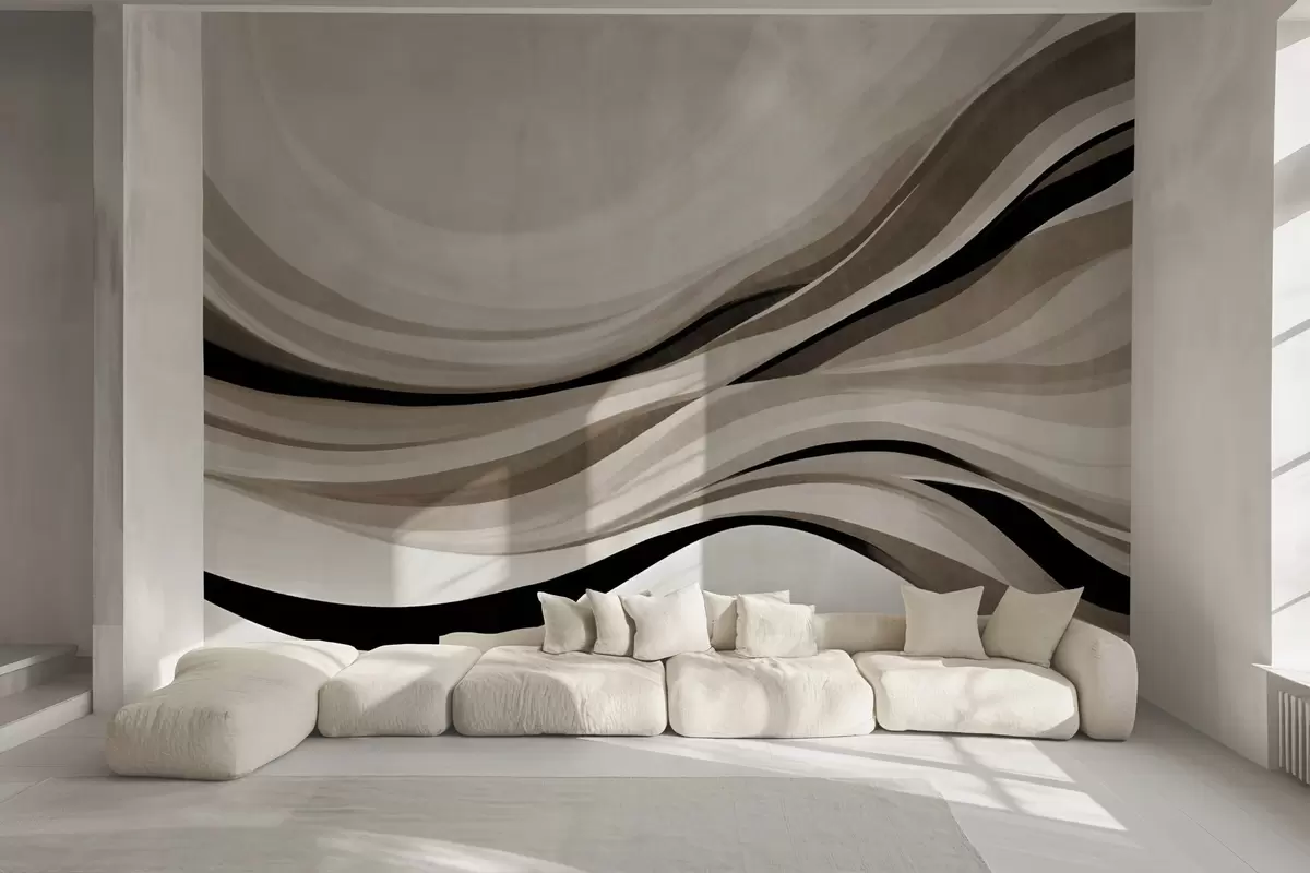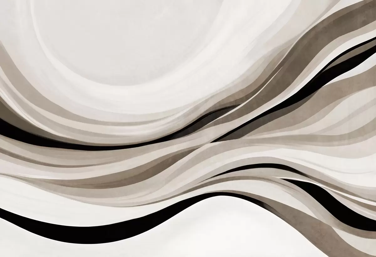 Papier peint Lignes ondulées abstraites dans des tons de beige et de noir sur fond clair, art texturé N° w09748