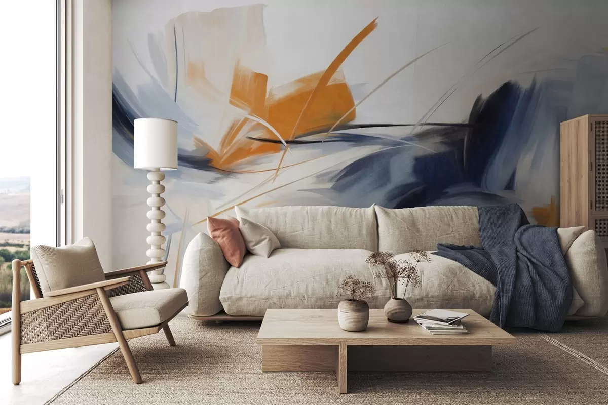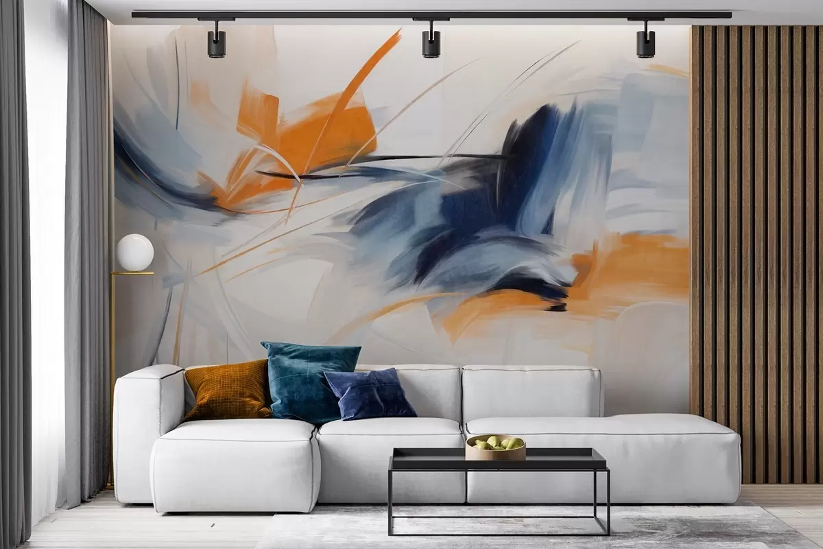 Papier peint Style de peinture abstraite avec des coups de pinceau texturés orange et bleus N° w09755