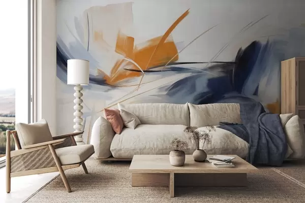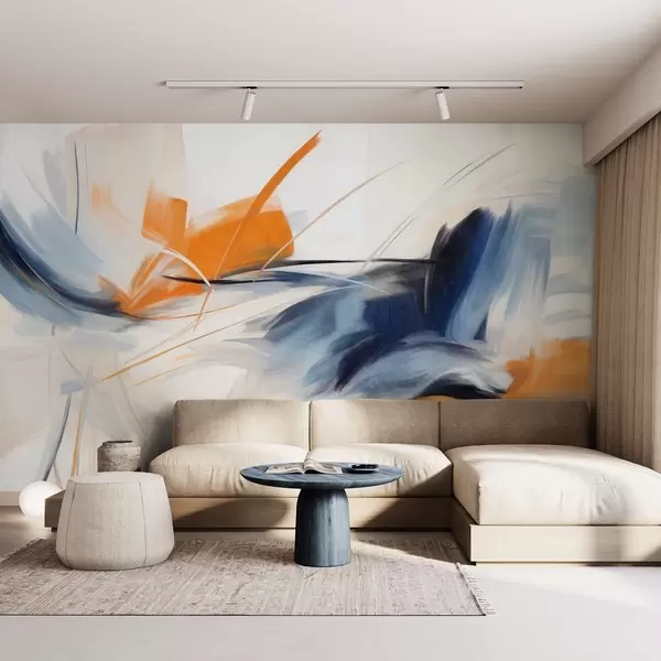 Papier peint Style de peinture abstraite avec des coups de pinceau texturés orange et bleus N° w09755
