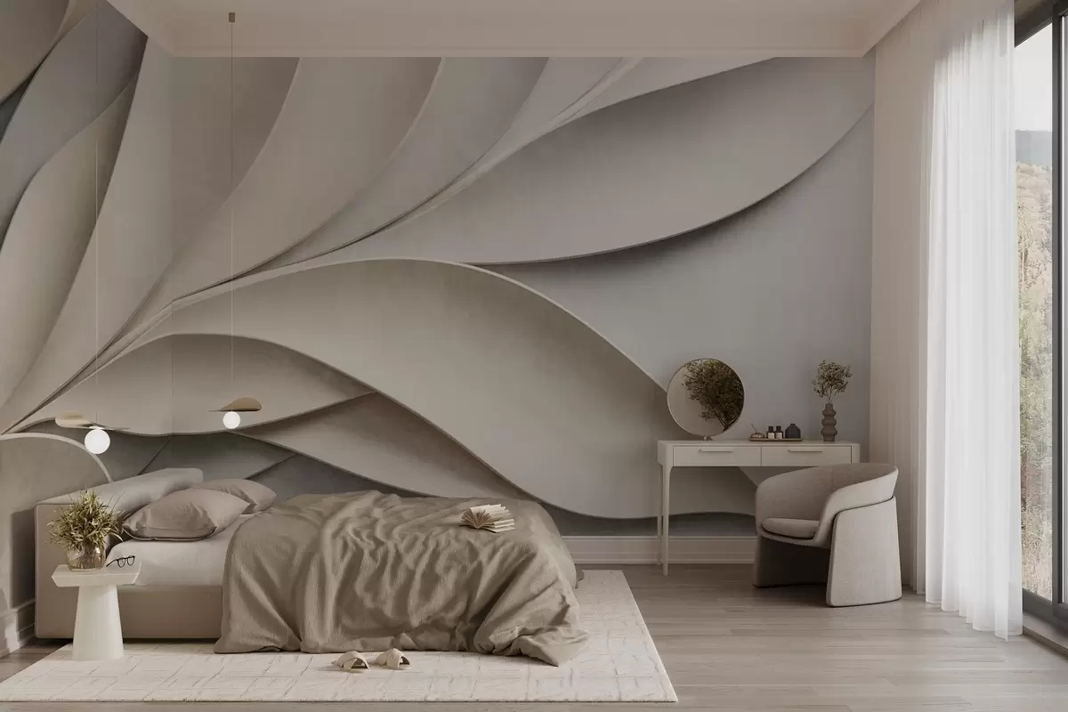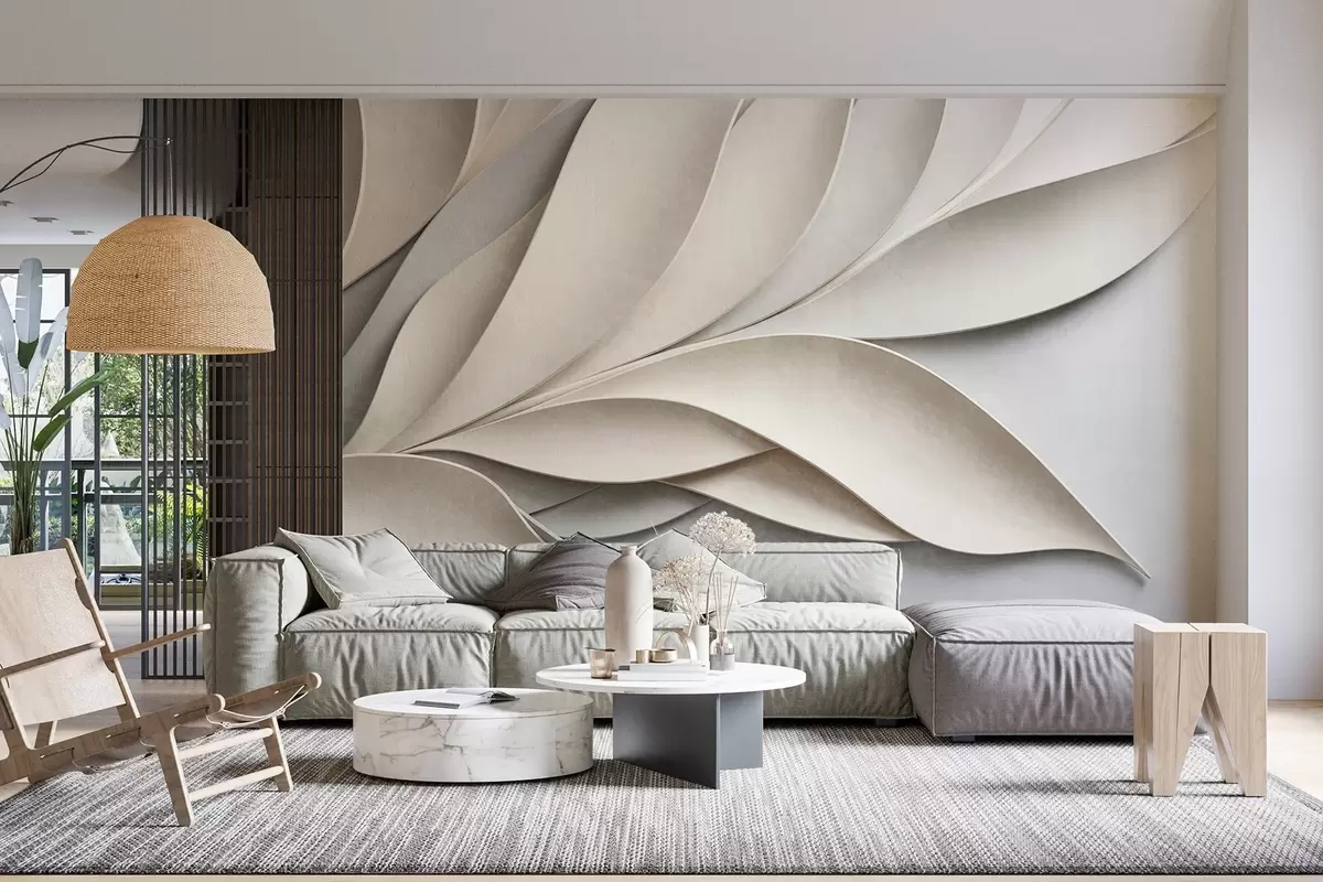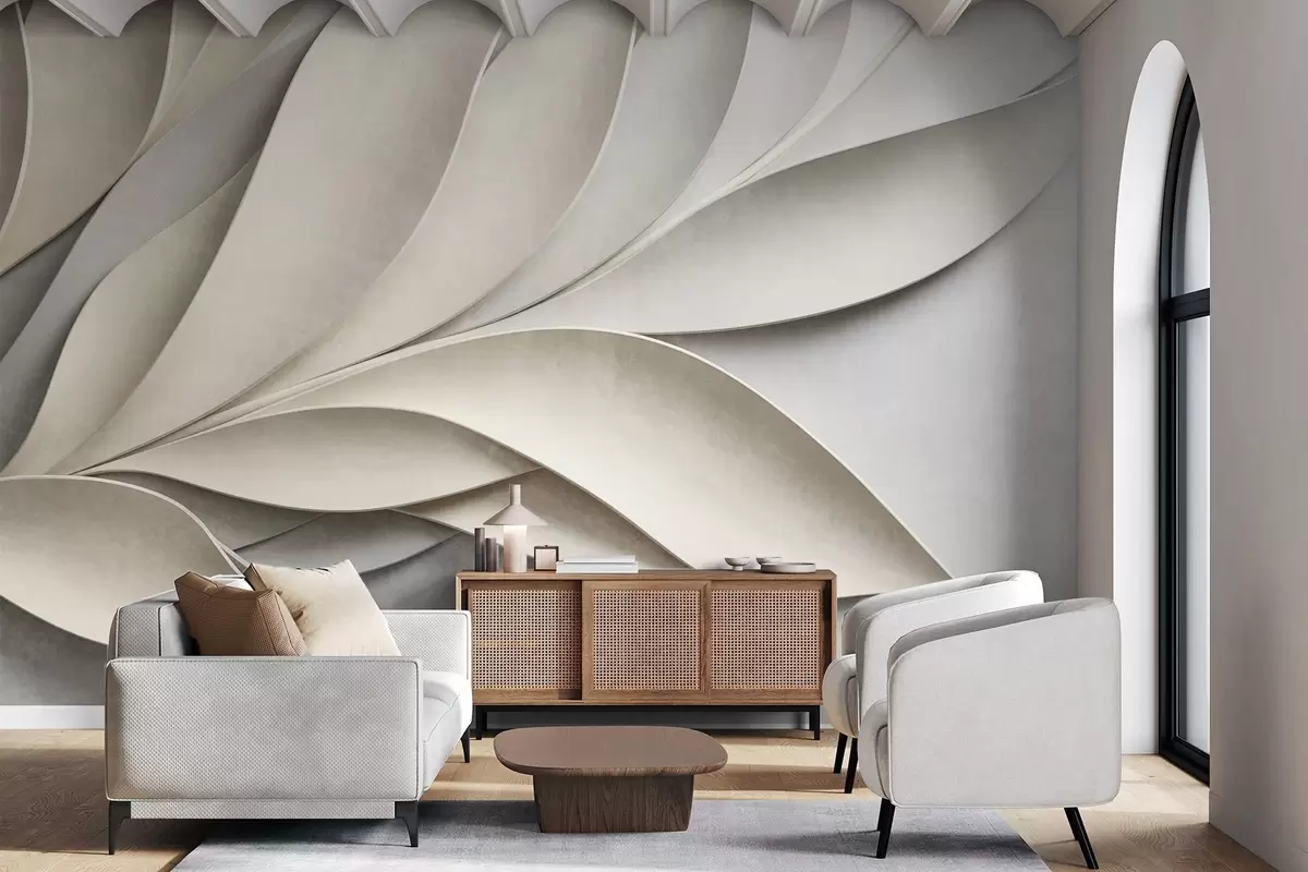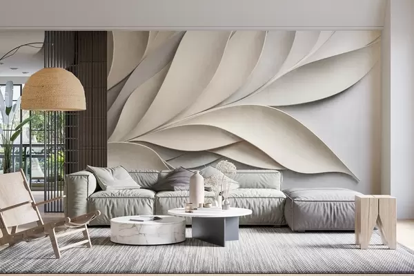 Papier peint Feuilles abstraites en beige et gris, art moderne texturé N° w09769