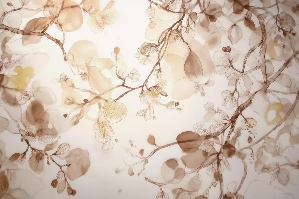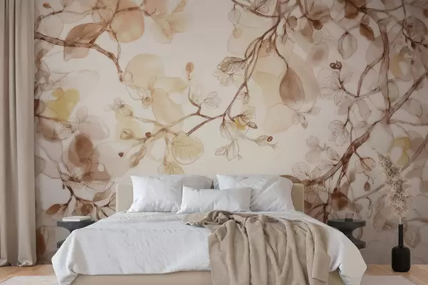 Papier peint Des branches aériennes suspendues dans des tons beiges, dans un style aquarelle N° w09795