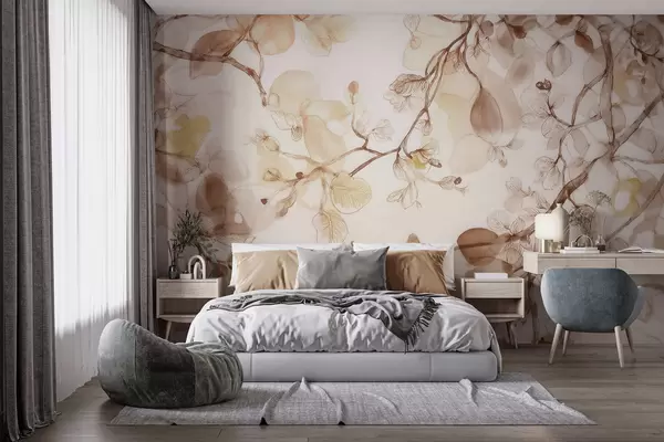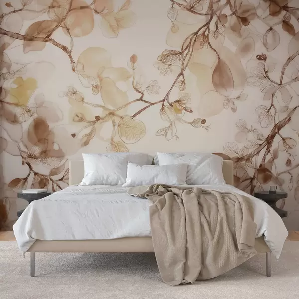Papier peint Des branches aériennes suspendues dans des tons beiges, dans un style aquarelle N° w09795