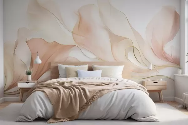 Papier peint Une texture fluide et abstraite dans des tons pêche et crème, rehaussée de lignes délicates N° w09815