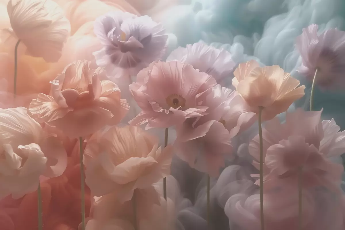 Papier peint Des fleurs aériennes aux pétales translucides, baignées dans la douce lumière du matin N° w09847