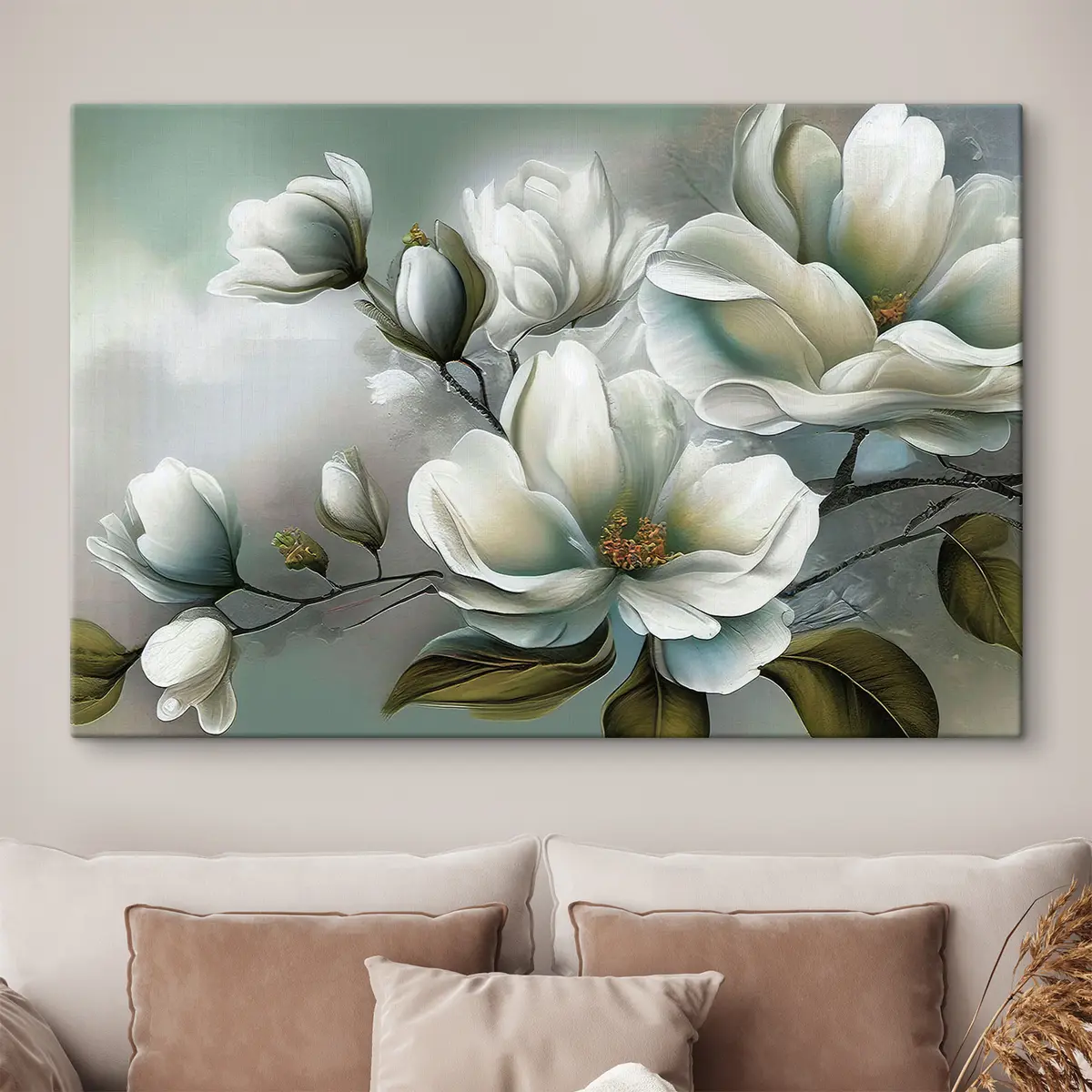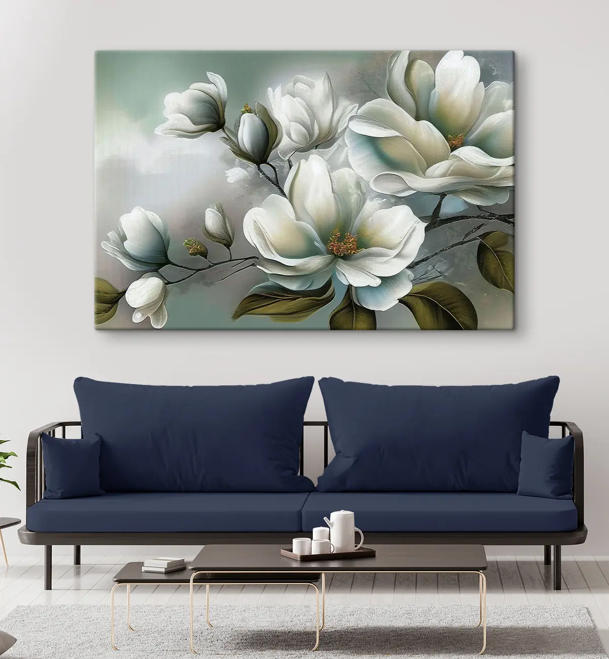 Tableau Fleurs blanches sur fond bleu Nr s35494