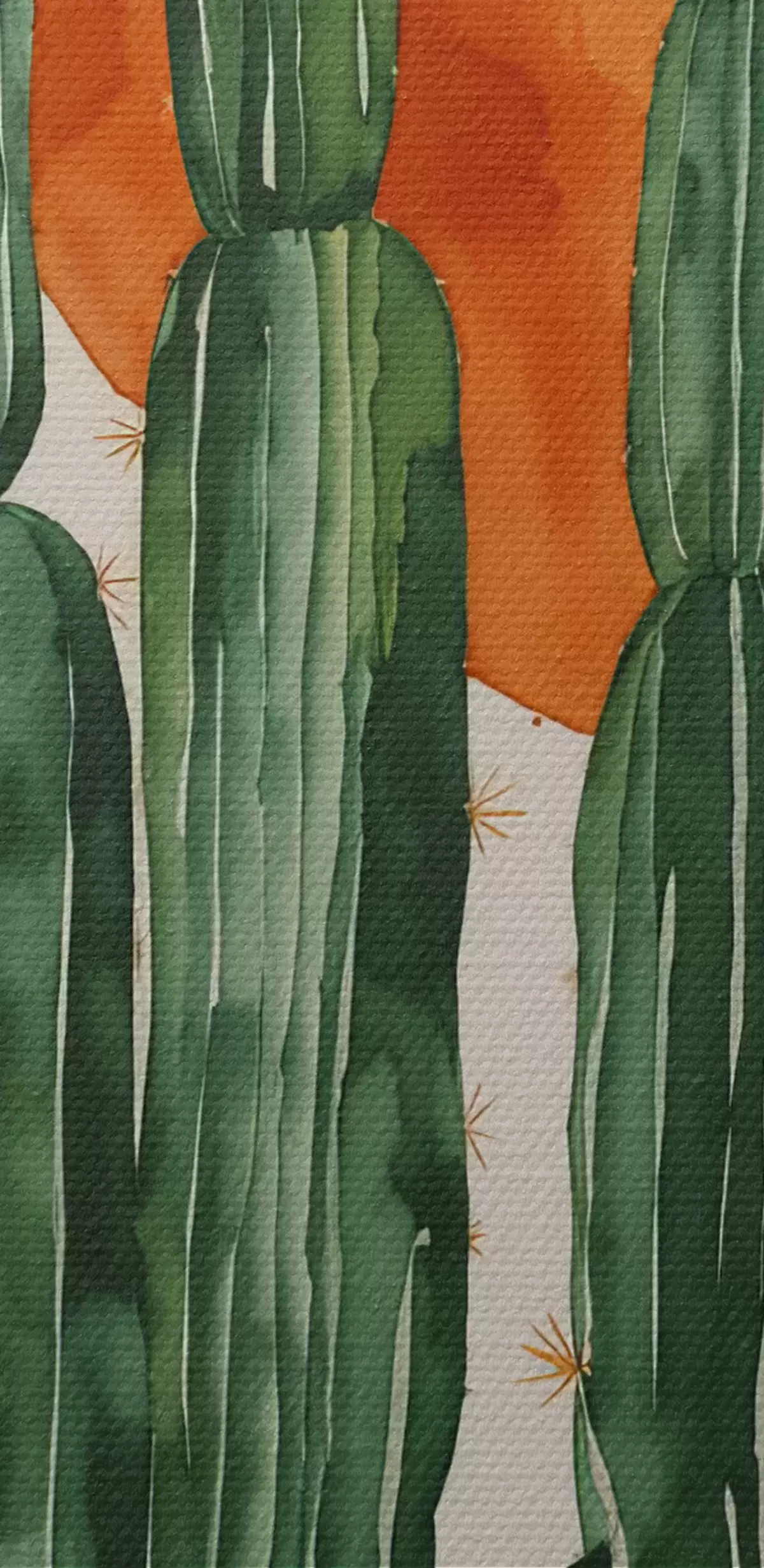 Tableau Cactus dans le désert contre le soleil à l'aquarelle Nr s36269
