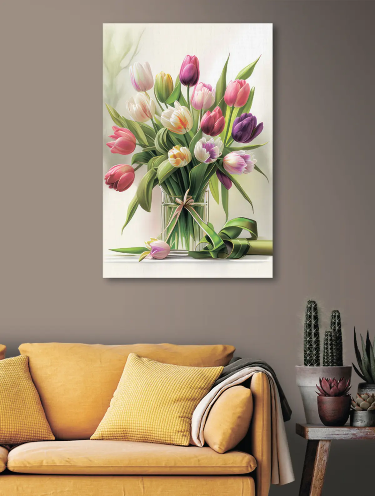 Trois types de matériaux peuvent être commandés : Economic Canvas - matériau dense et durable pour l'impression numérique, identique à la toile de peintre, surface imperméable, reproduction réaliste des détails, matériau à grain moyen. Premium Canvas - la texture ressemble à celle d'une toile de peintre (petits fils entrelacés). Reproduction douce et détaillée de l'image sur une surface mate. Eco-Premium - tissu 100 % coton de haute qualité. Grâce aux fibres naturelles de coton, le matériau est durable et résistant à l'usure. Excellente reproduction des couleurs et des détails.