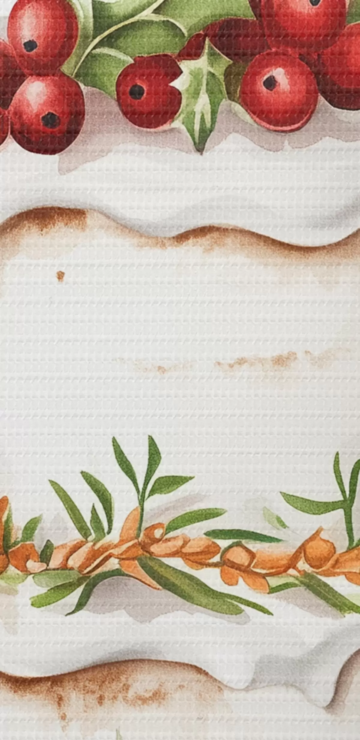 Tableau Décorations de Noël, gâteau fastifié, maison en pain d'épices, oranges et bougies, style aquarelle Nr m00385