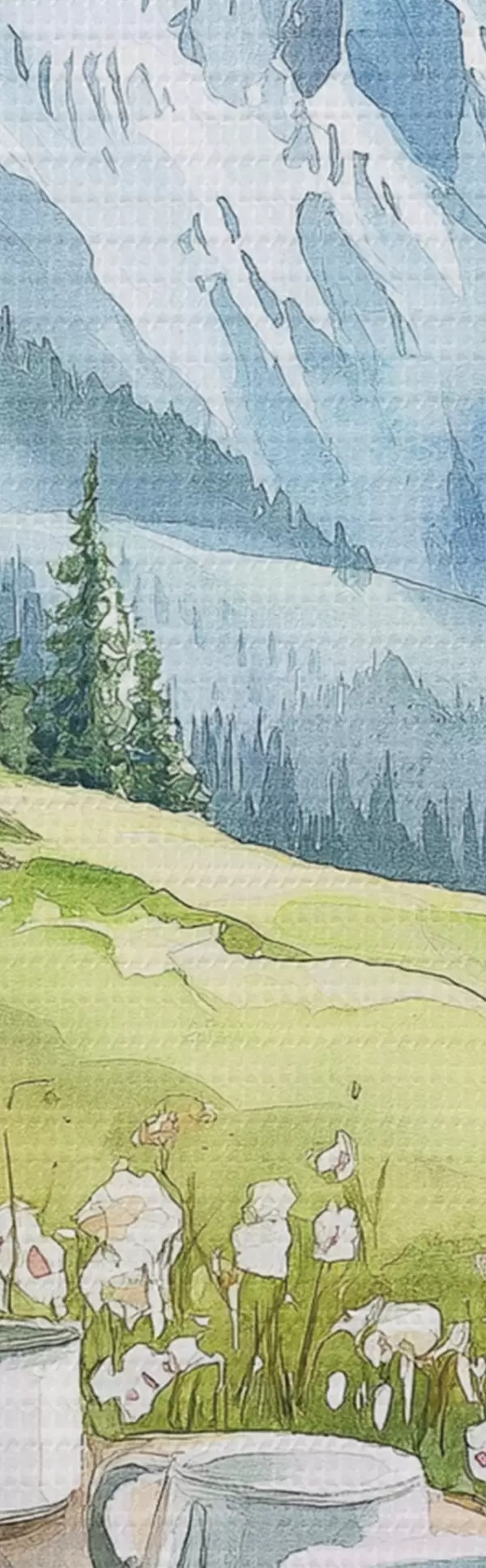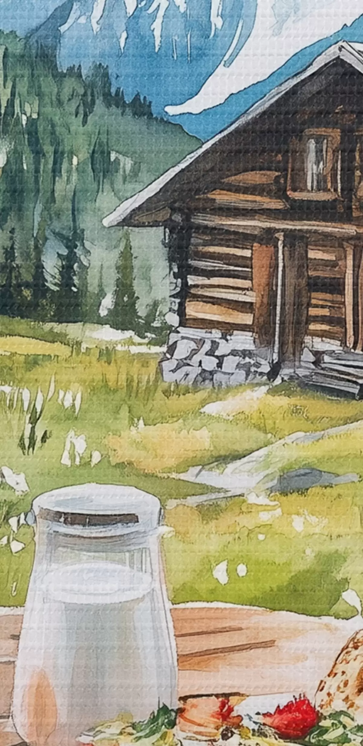 Tableau Les Alpes, les beaux paysages de montagne, le petit déjeuner esthétique, les maisons en bois Nr m00403