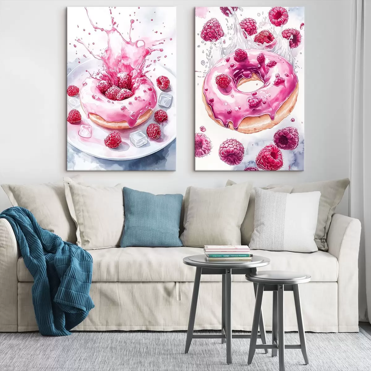 Tableau Délicieux beignets de style aquarelle avec des framboises, des couleurs roses Nr m00412