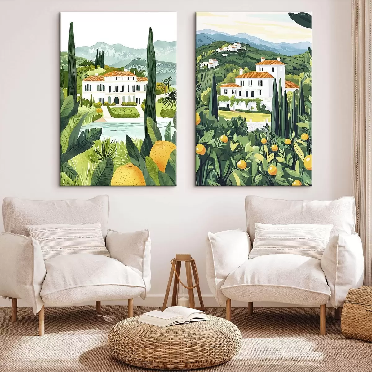Tableau Paysages méditerranéens avec arbres et maisons, côte maritime, Espagne m00450