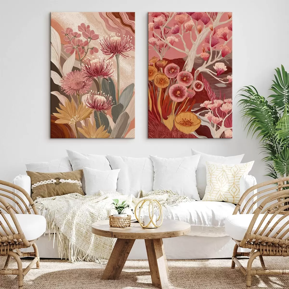 Tableau Fleurs de style boho, dessin détaillé, couleurs bordeaux Nr m00476