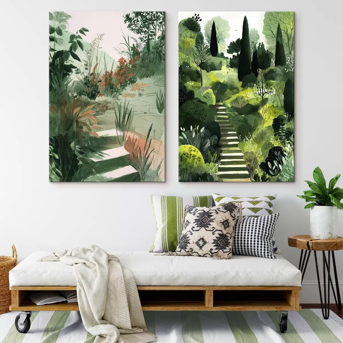 Tableau Jardin oriental verdoyant avec des buissons et des arbres m00478