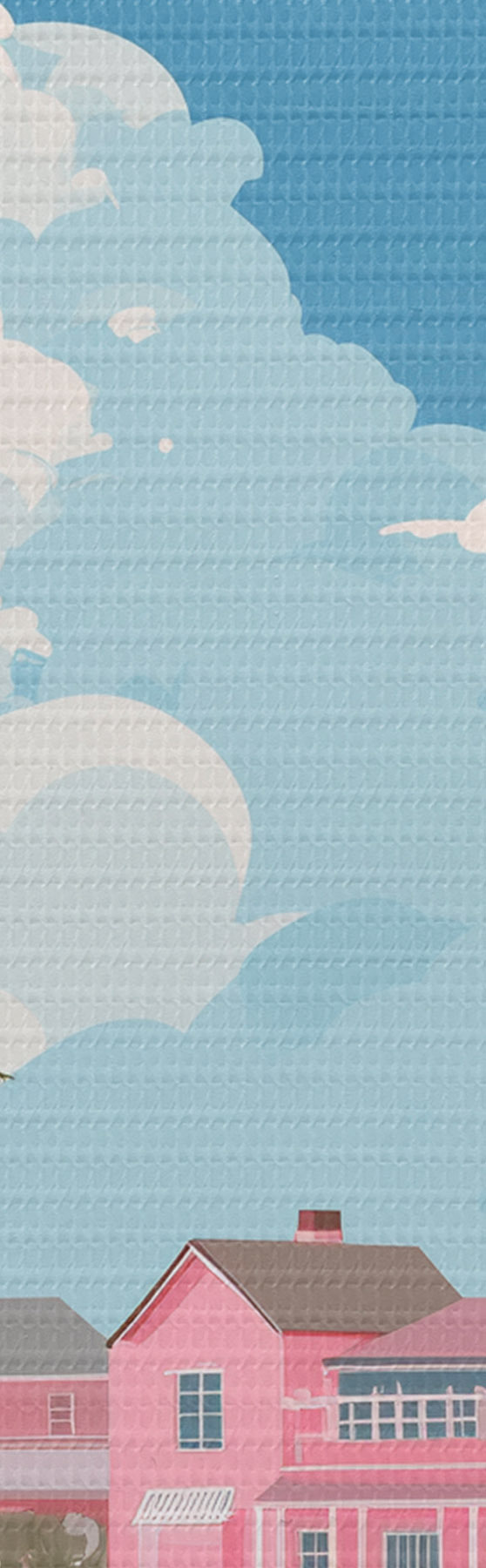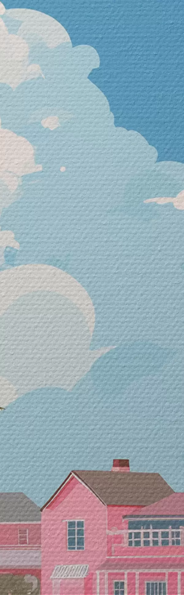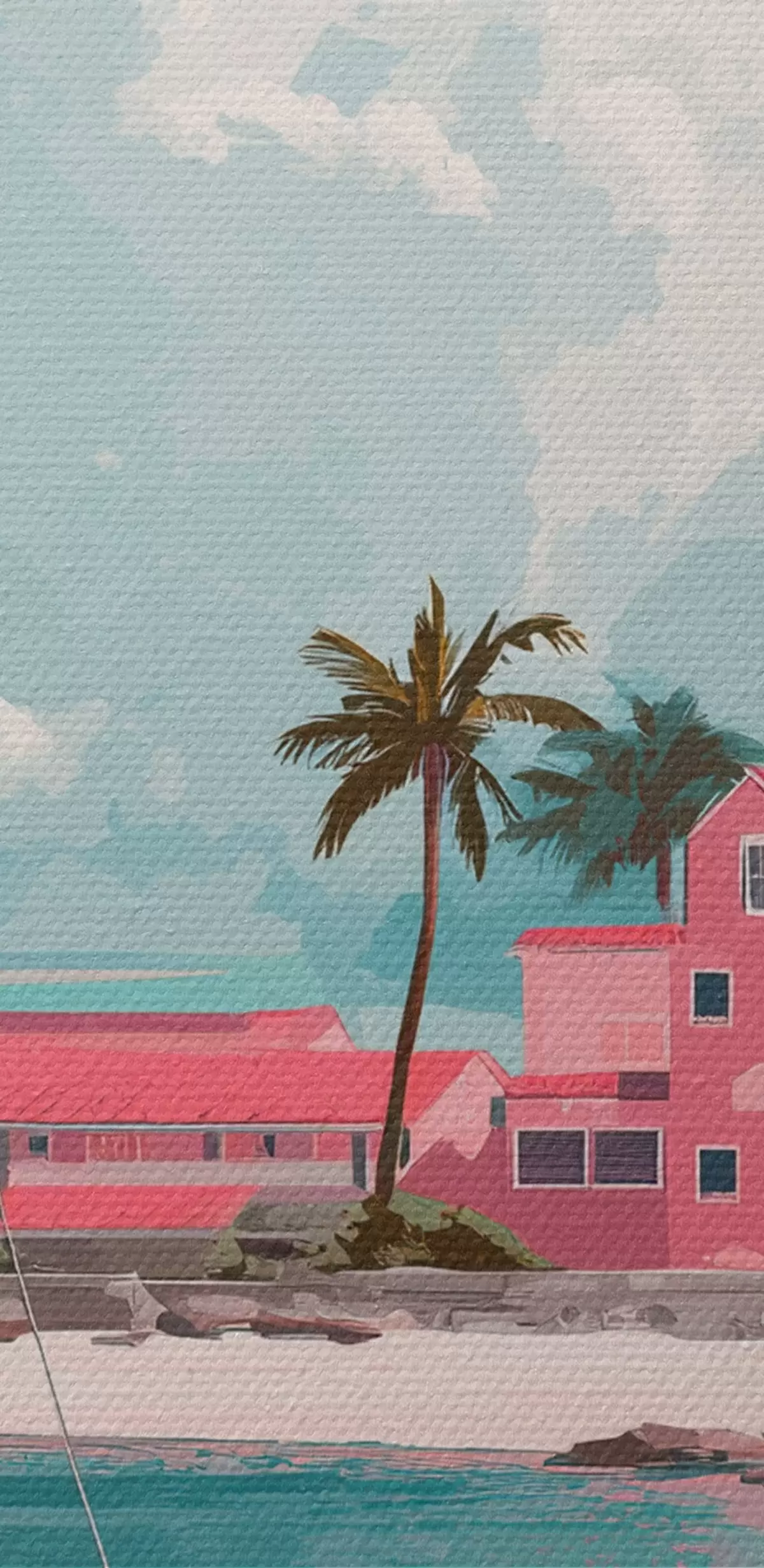 Tableau Plage d'été rose avec soleil, voilier et maisons m00479