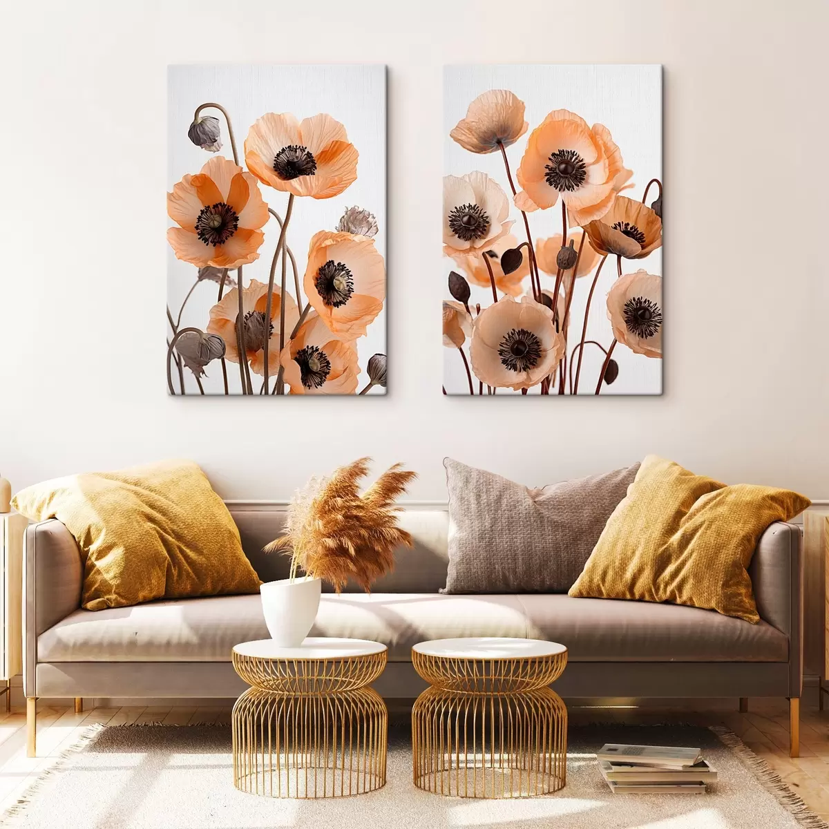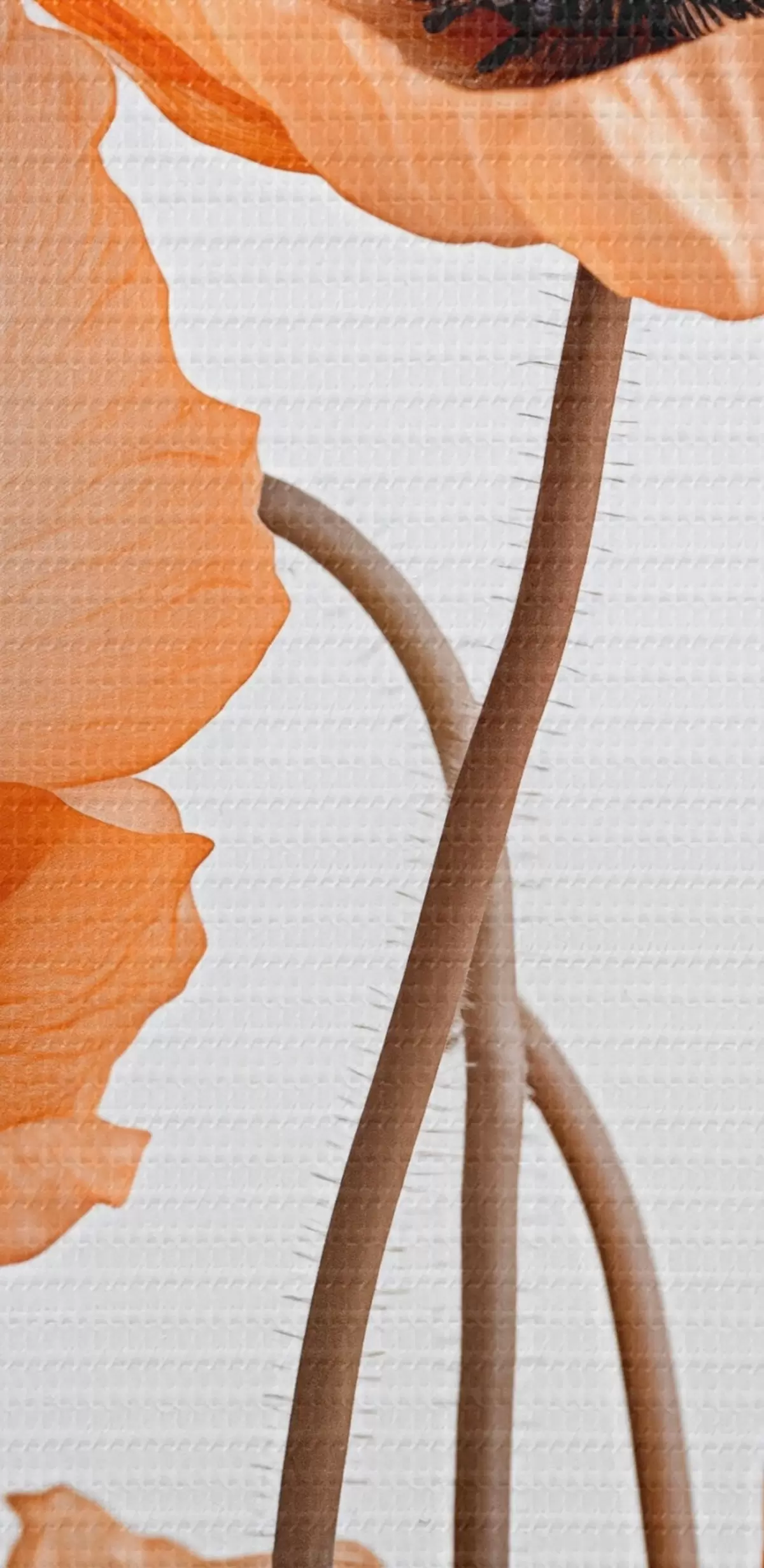 Tableau Coquelicots orange, fleurs séchées sur fond clair, éclairage doux, pétales délicats, arrangement floral m00518