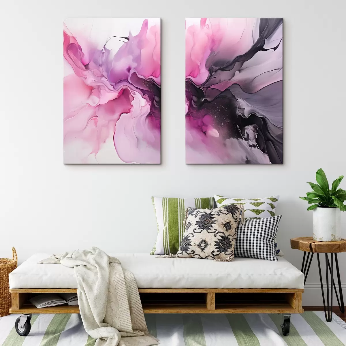 Tableau Des tourbillons abstraits de rose, de violet et de noir se fondent dans une composition fluide et organique, créant une impression de mouvement  m00532