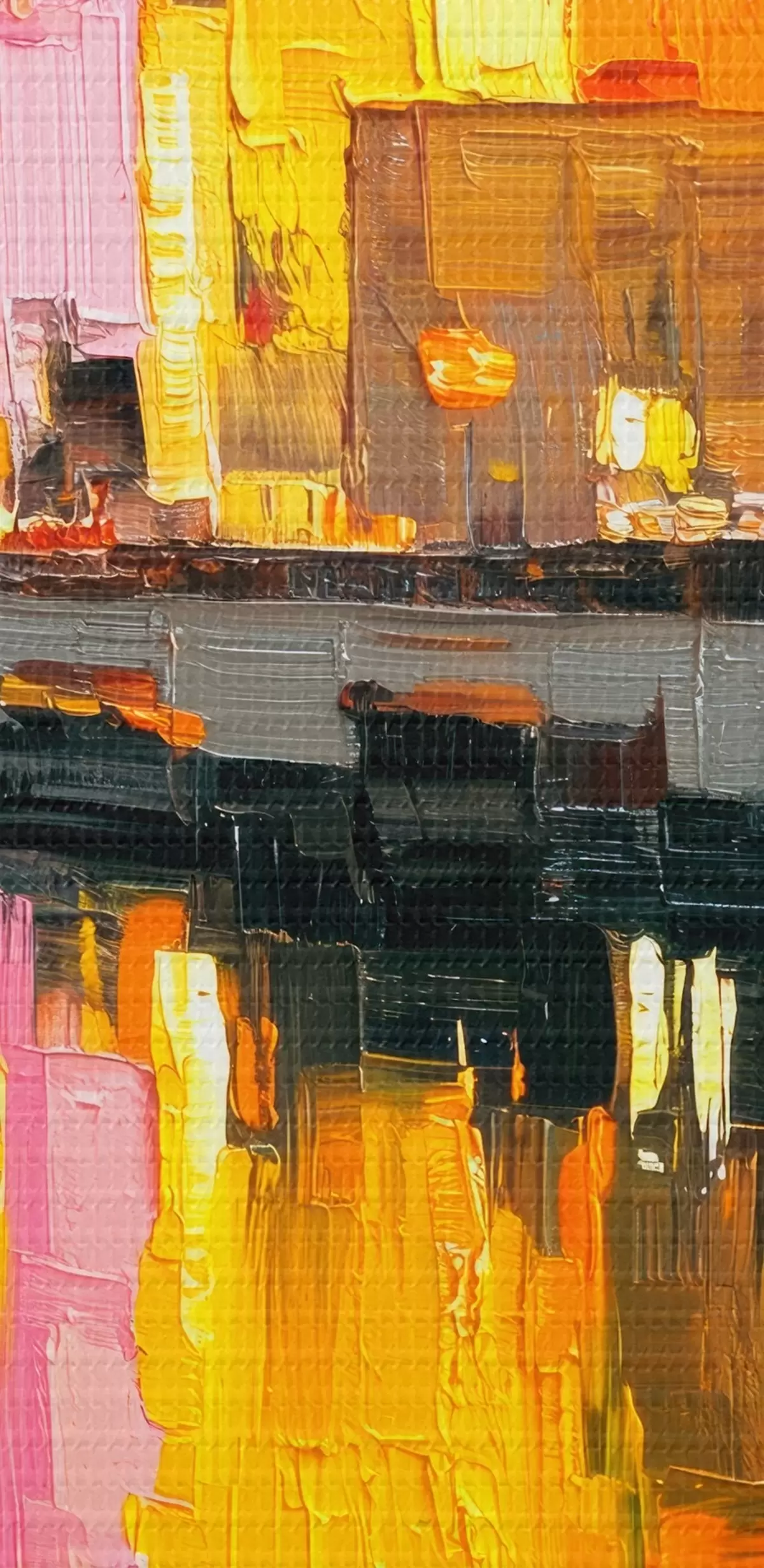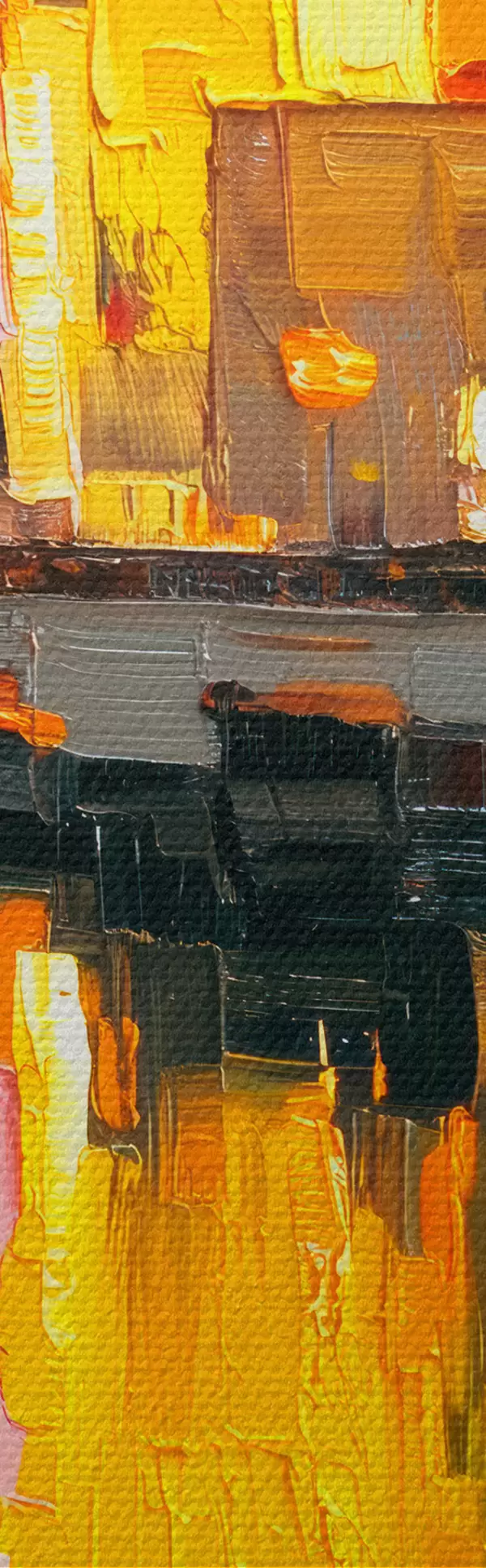 Tableau Dynamique de la ville : composition abstraite avec des reflets de lumières sur la rivière Nr m00569