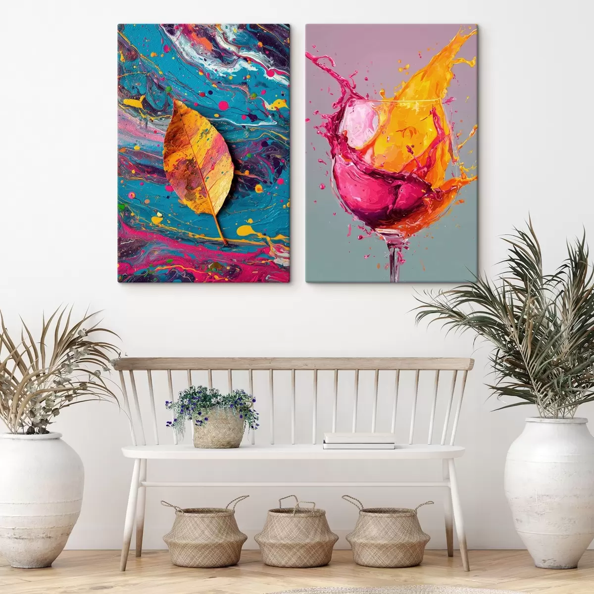 Tableau Abstraction expressive avec des éléments de la nature et des boissons m00570