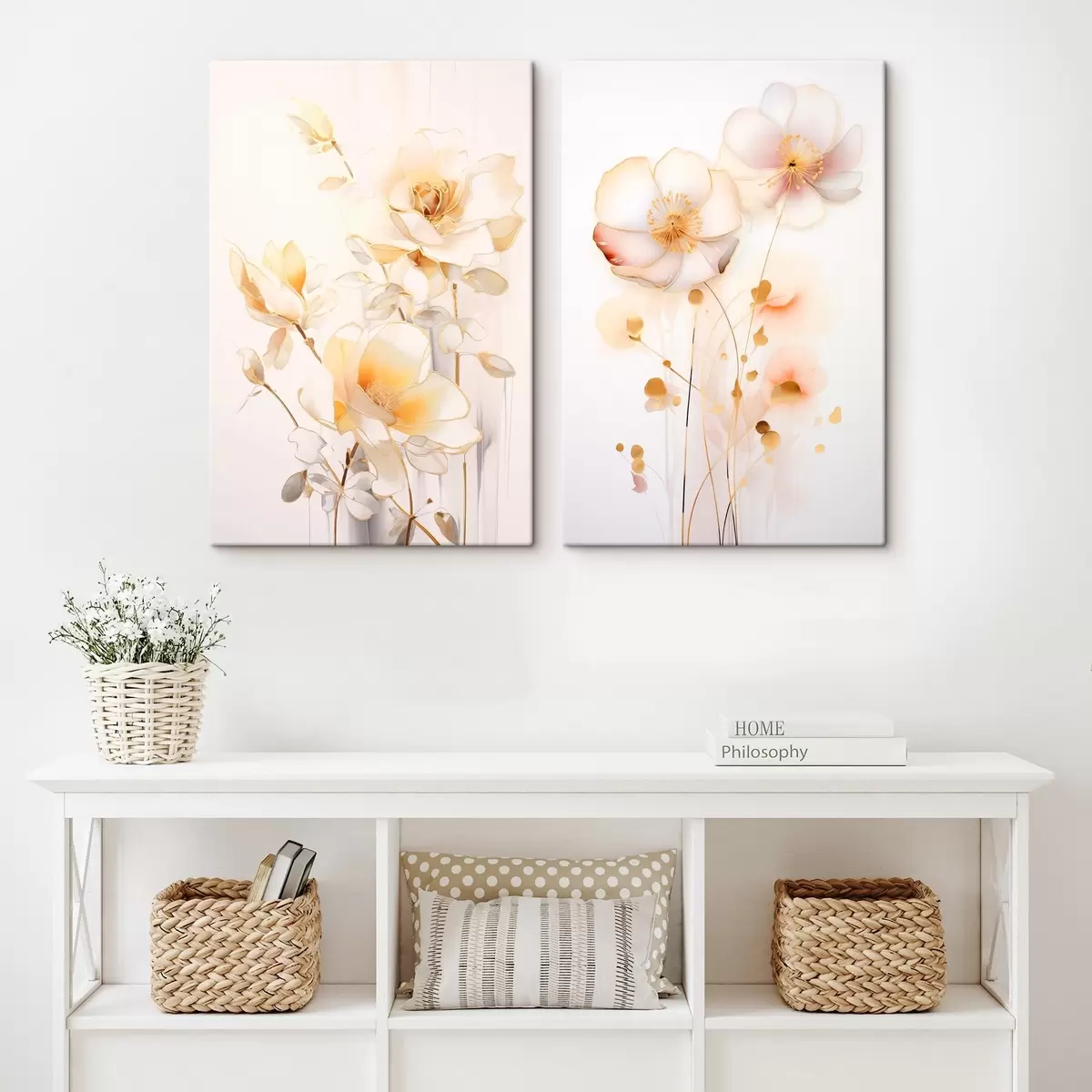 Tableau Duo floral : diptyque doux en style aquarelle avec des lignes élégantes Nr m00577