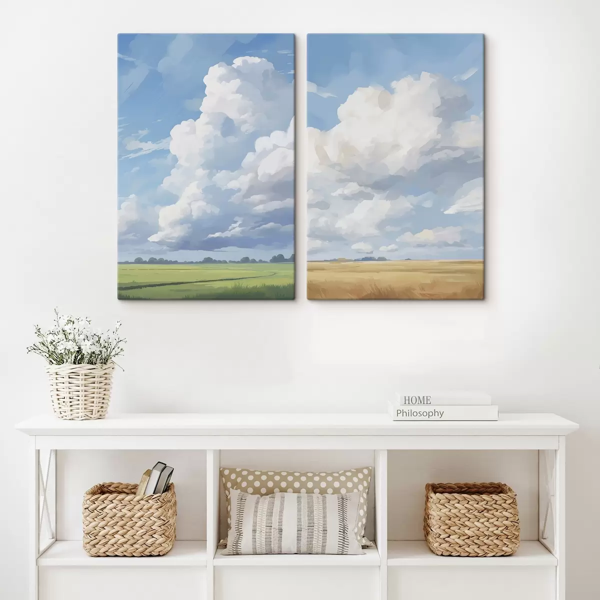 Tableau Champ contre le ciel avec d'énormes nuages Nr m00624