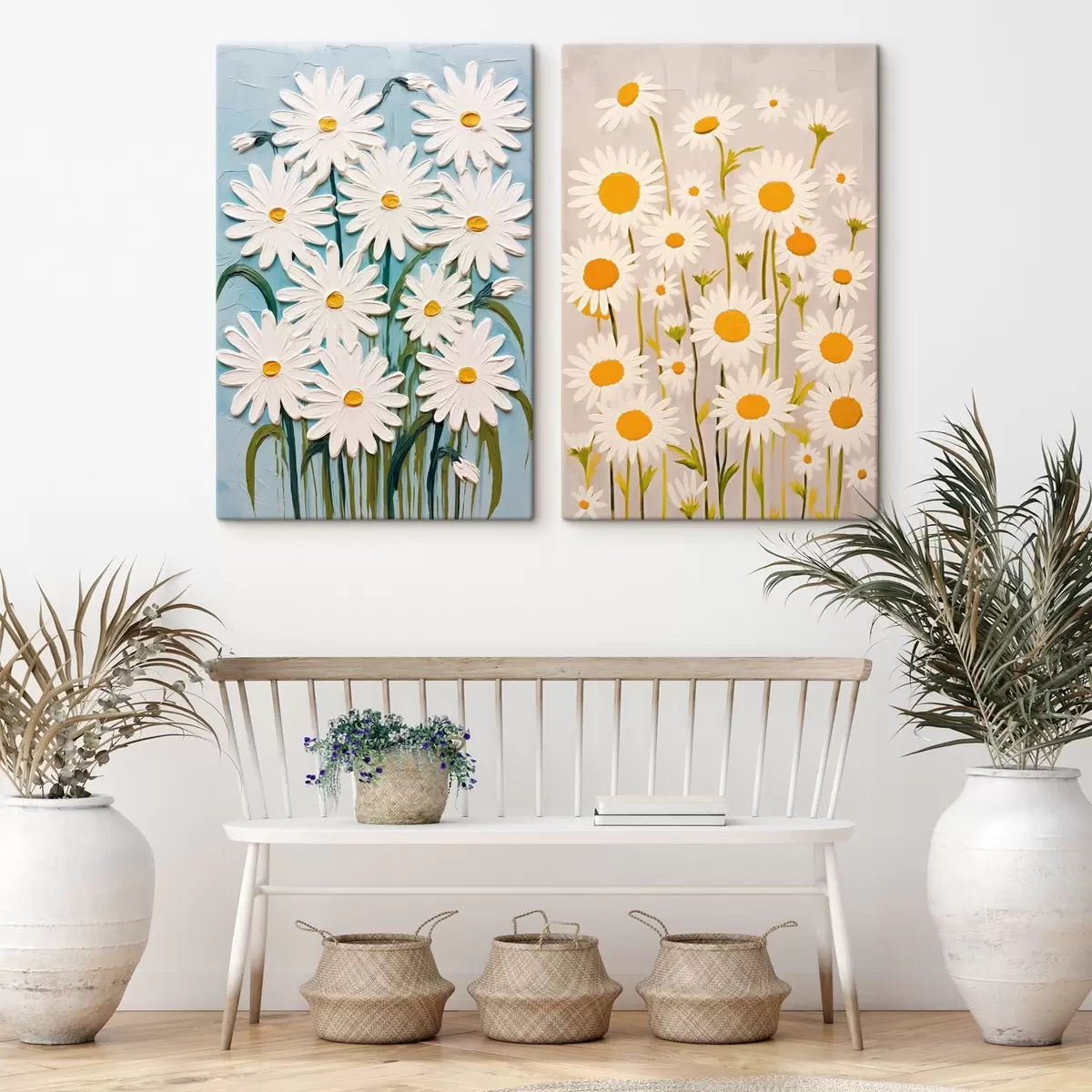 Tableau Fraîcheur printanière : diptyque de marguerites volumineuses en style empâté Nr m00633