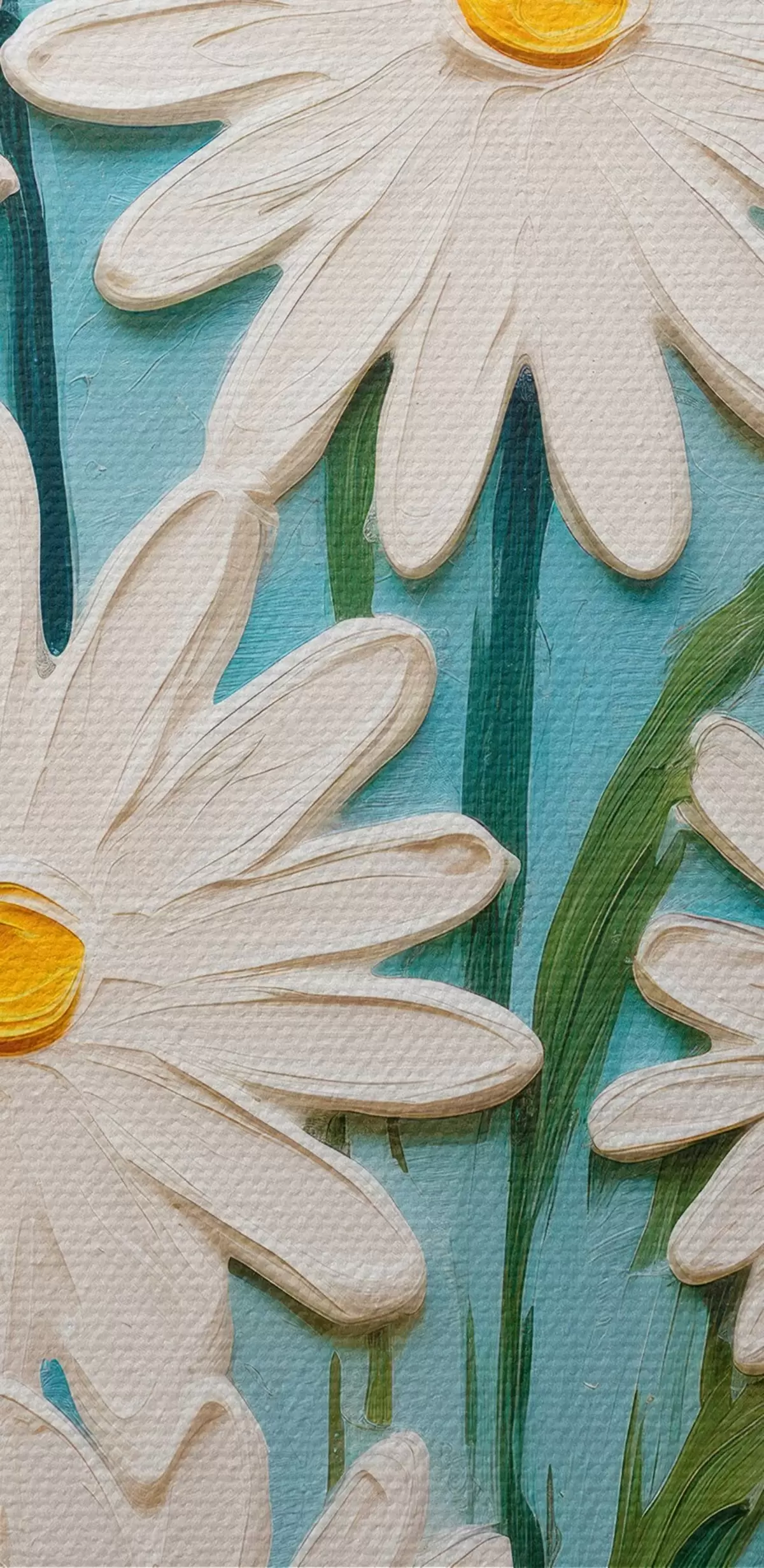 Tableau Fraîcheur printanière : diptyque de marguerites volumineuses en style empâté m00633