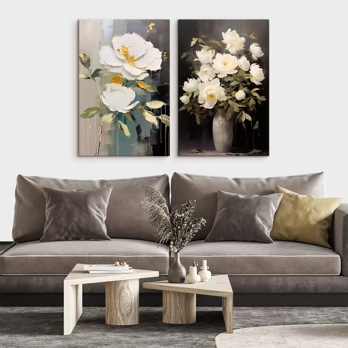 Tableau Pivoines blanches sur fond sombre : composition décorative Nr m00634
